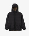 Reversible puff jacket with soft high-density taffeta, PRIMALOFT® insulation, front piping, back chest pocket, action-pleated sleeves, and adjustable cuffs.