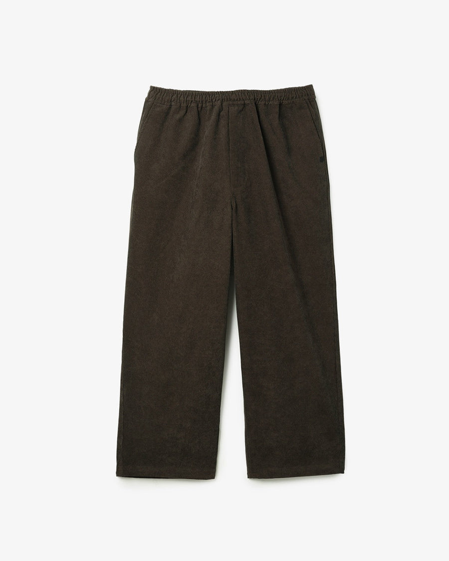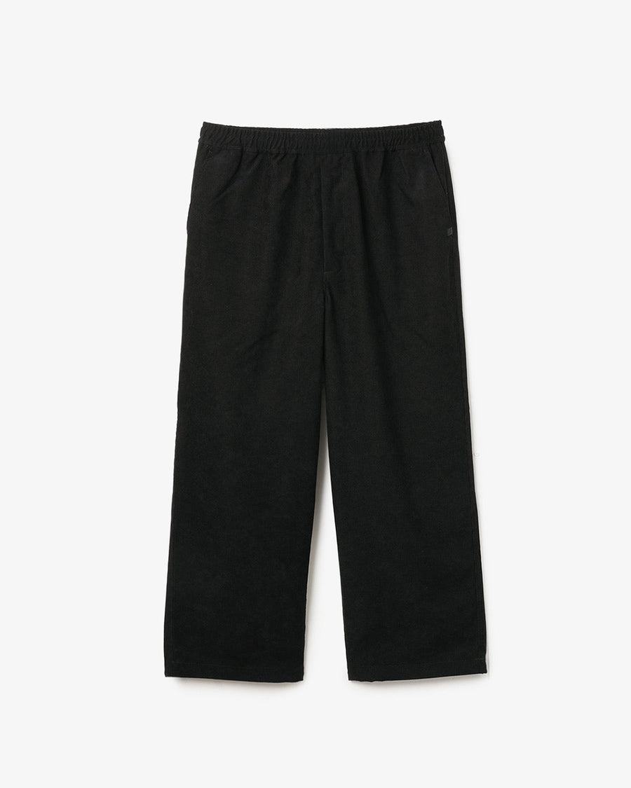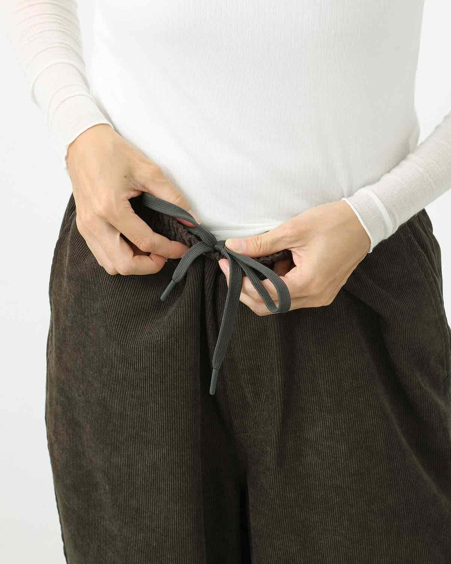 These easy pants in fine corduroy feature an elastic waist, drawstring cuffs, and a wide tapered silhouette for a sporty, functional design.