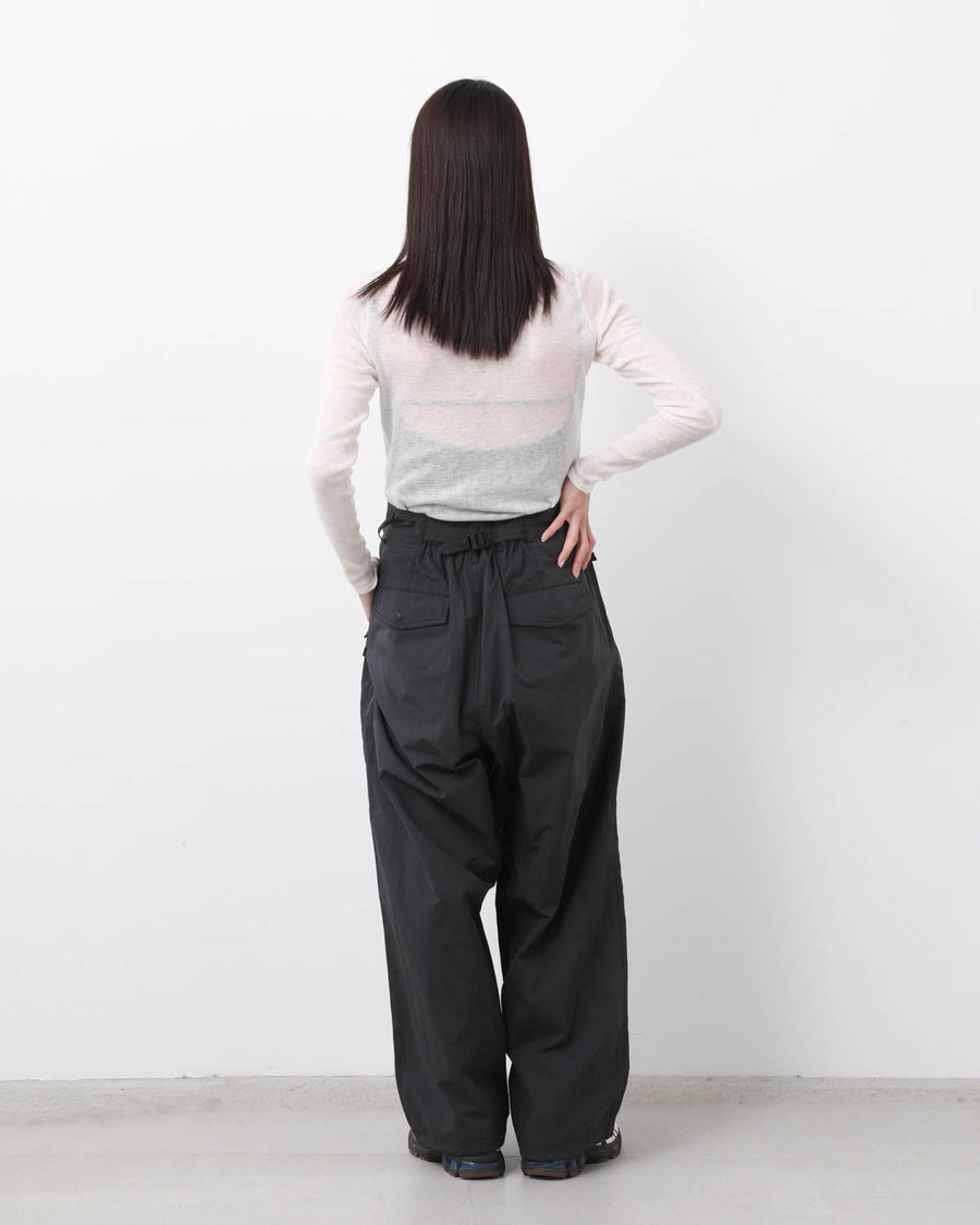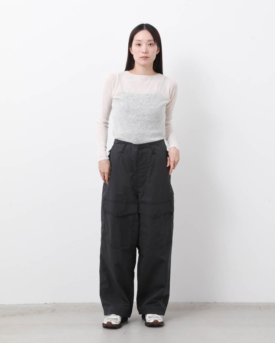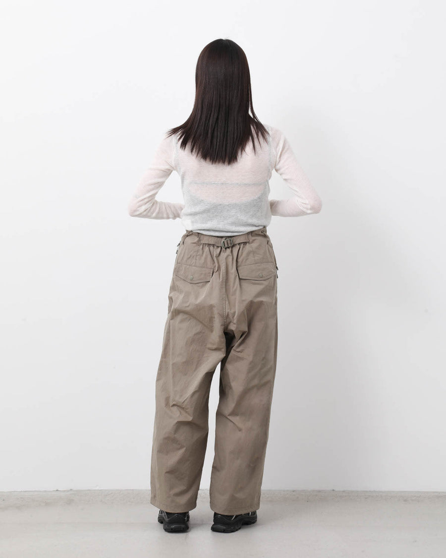 アメリカ空軍のフライトパンツをデザインソースに、ワイドシルエットや裾のドローコードとジッパー、各部のジップポケットを備えて機能性を高め、さらにメッシュライニングを配することで快適な着用感に仕上げています。