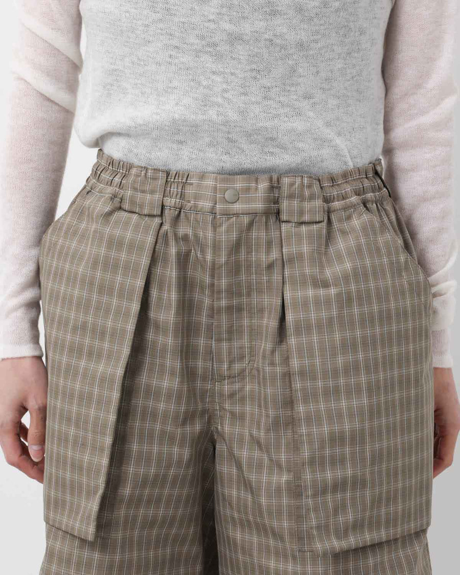 Outdoor shorts in original check polyester fabric, combining durable, wrinkle-resistant comfort with functional pocket details.