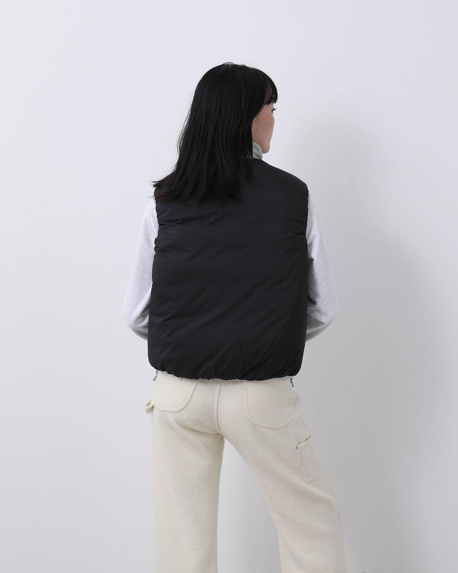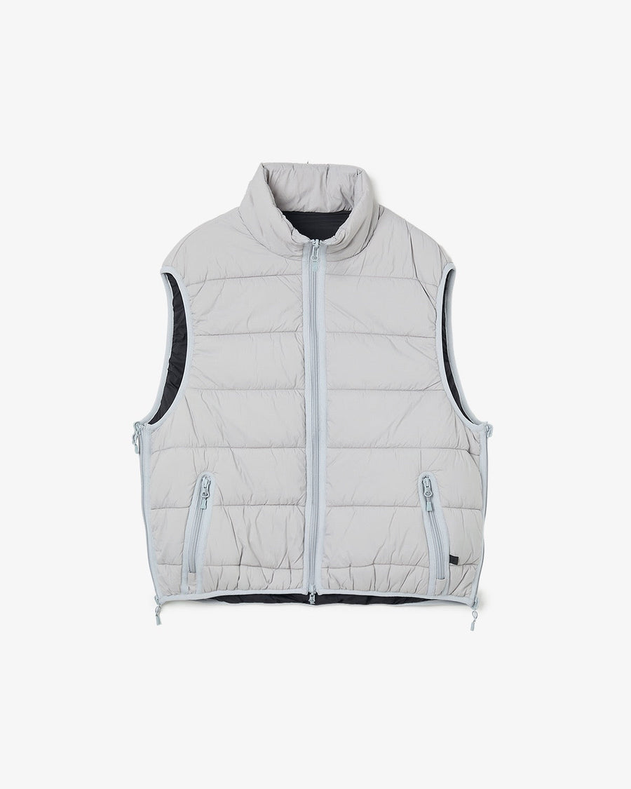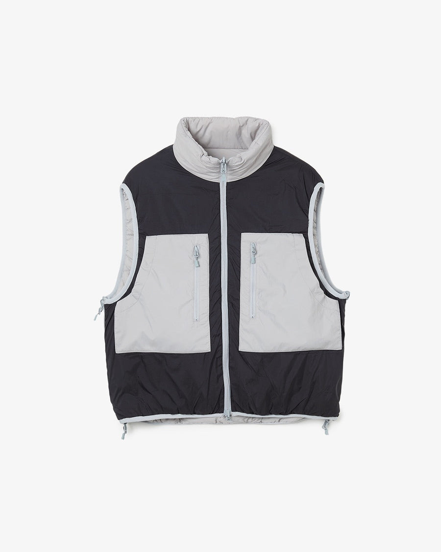 Reversible vest with windproof, eco-friendly water-repellent fabric. Filled with 100% recycled PrimaLoft® Black Insulation RISE for warmth and resilience.