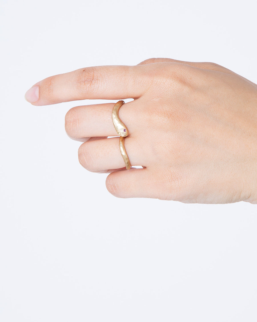 再生や無限を象徴する蛇をモチーフにした、8の字を描くリングです。