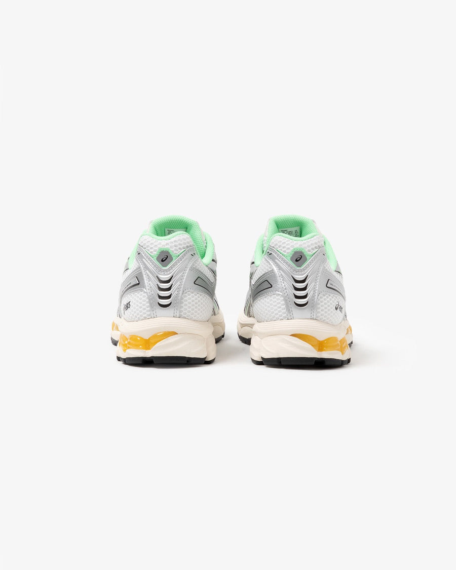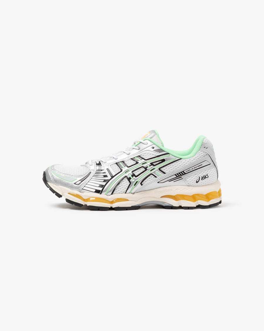 GEL-KAYANO 12.1, made with KITH, updates the 2006 model with an armor-inspired mesh upper and GEL-NIMBUS 17 sole for breathable, cushioned comfort.
