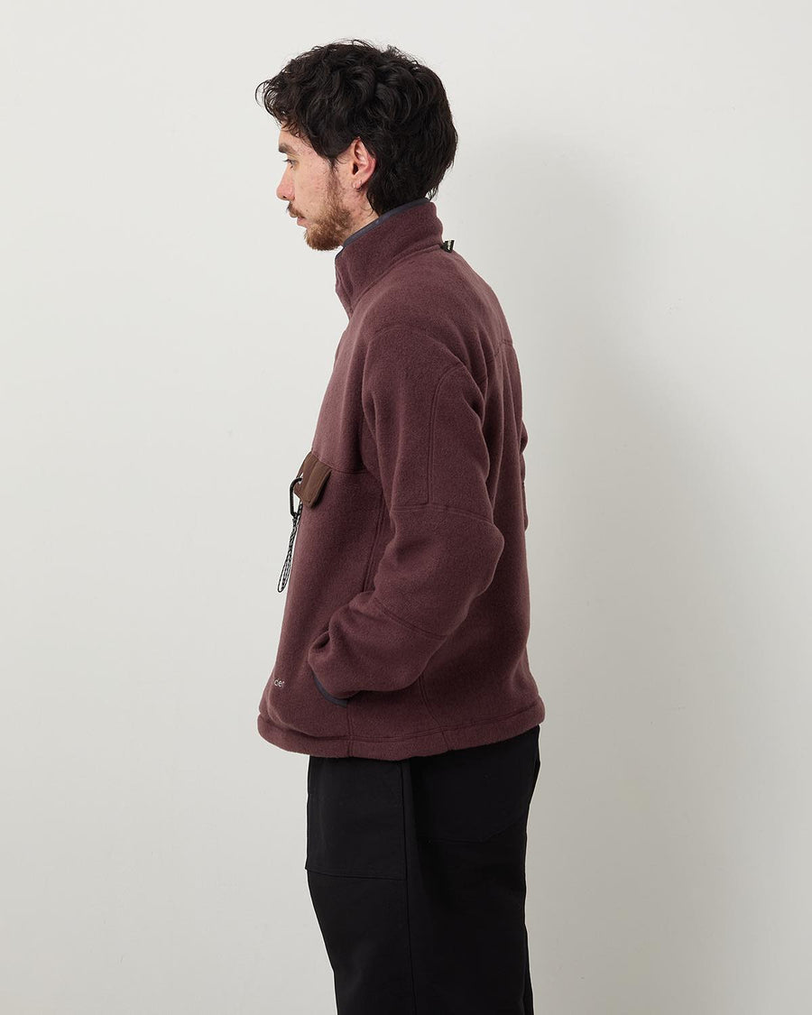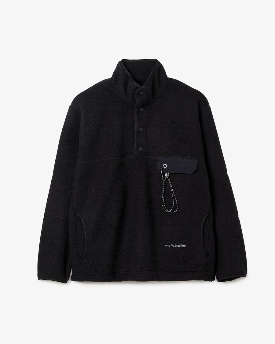 A pullover top made from soft, stretchable CALAMAI TECHNICAL FABRICS wool fleece, featuring and wander’s signature 3D cut, reflective details, and original carabiner design.