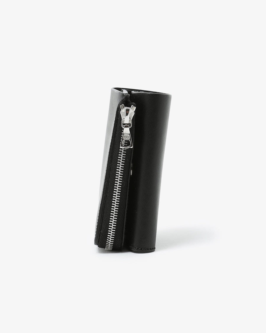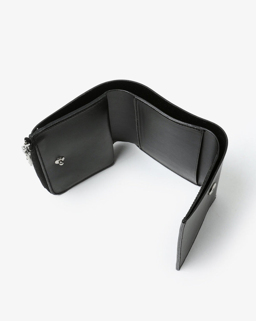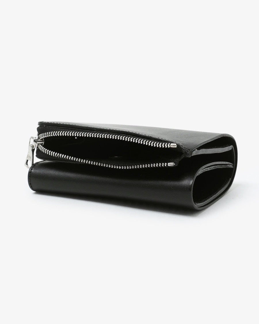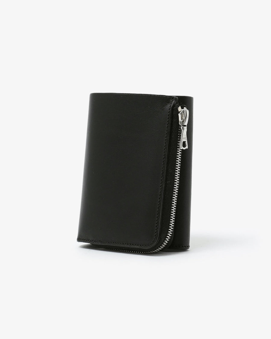 A compact wallet made from vegetable-tanned cow leather, featuring a minimalist design typical of 〈Aeta〉 with bill, coin, and card compartments.