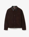 Leather jacket in soft New Zealand deerskin suede, inspired by Levi’s 2506XX 1st and Short Horn models, with relaxed fit, natural shoulders, and sheepskin-contrast front collar.