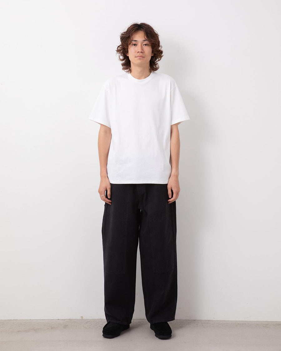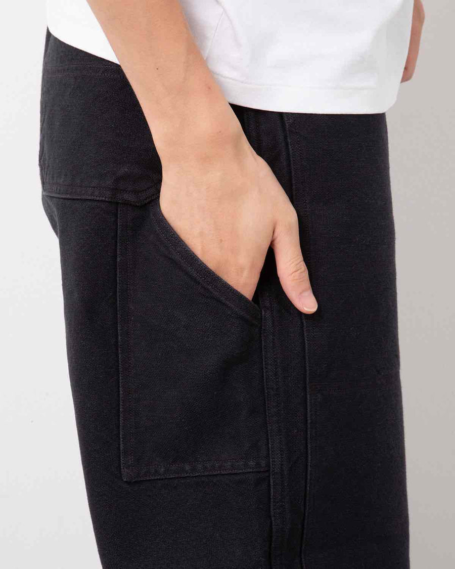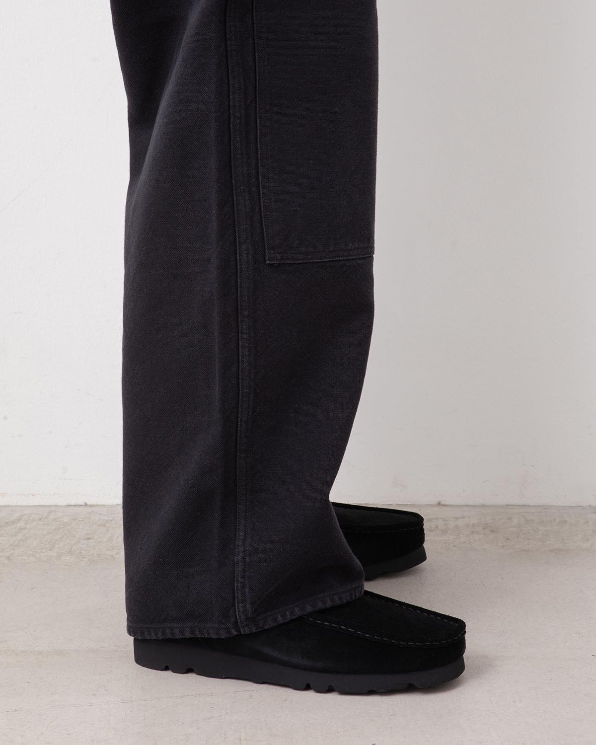 The VINTAGE SILK HEMP DOUBLE KNEE PANTS blend silk, cotton, and hemp for firm yet soft fabric, with a wide fit and unique connected knee patches and double waist pockets.