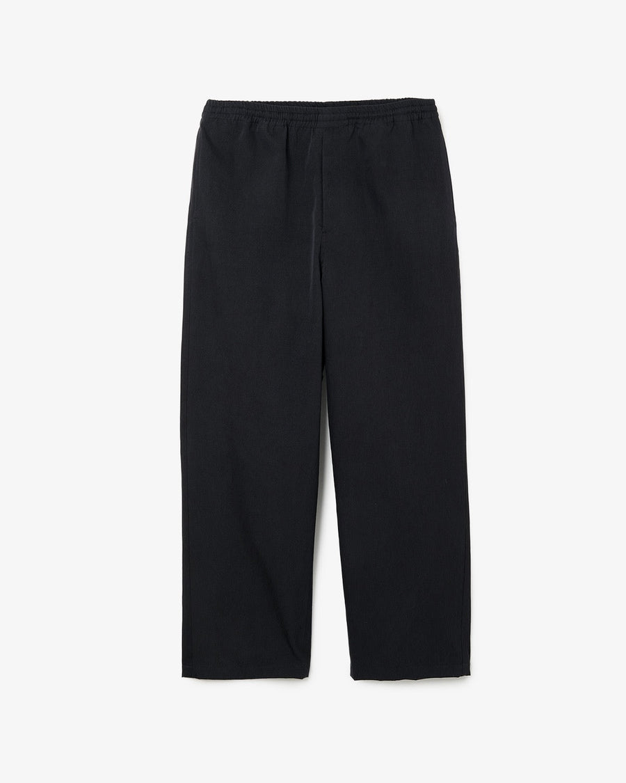 These easy trousers are crafted from a silk-cotton blend ultra-high-density double cloth, treated with Nidom bio-finishing for a vintage feel. They feature a tapered wide silhouette with wide stitching and thicker fold widths.