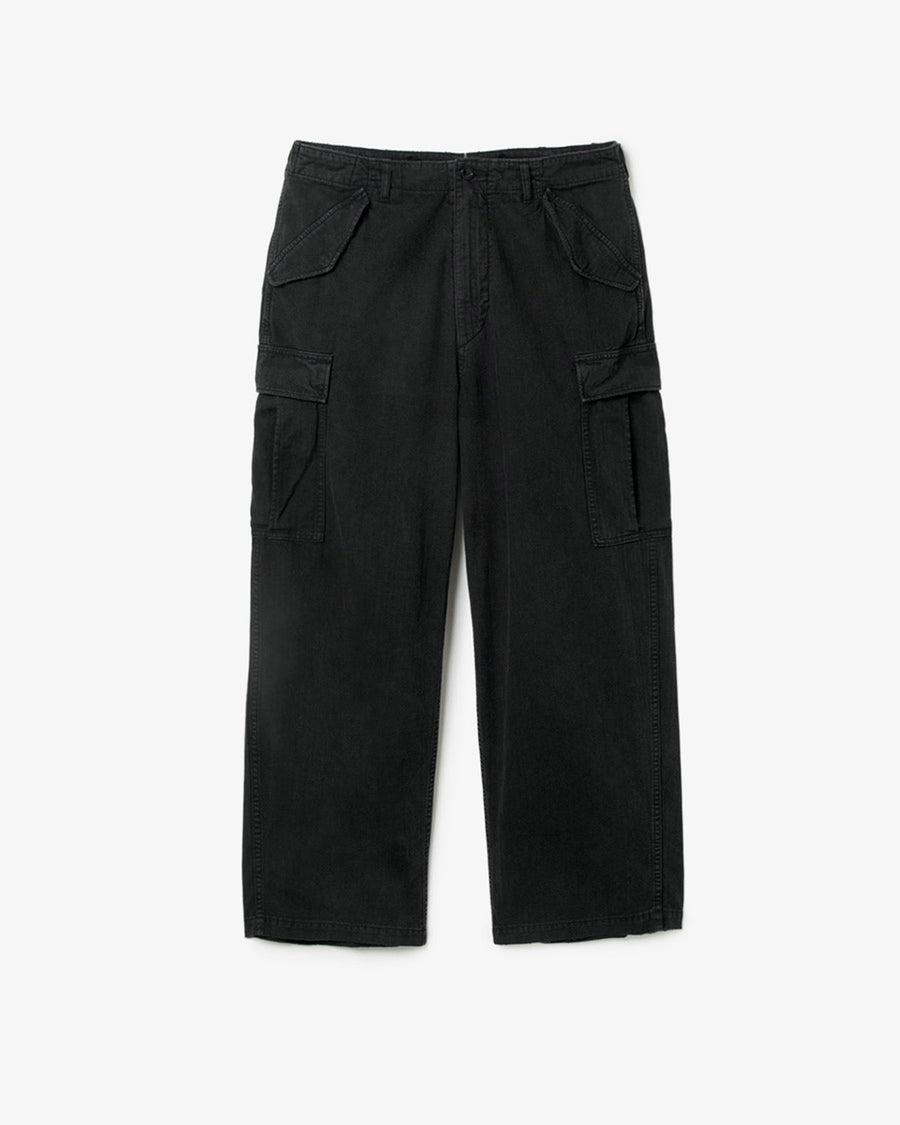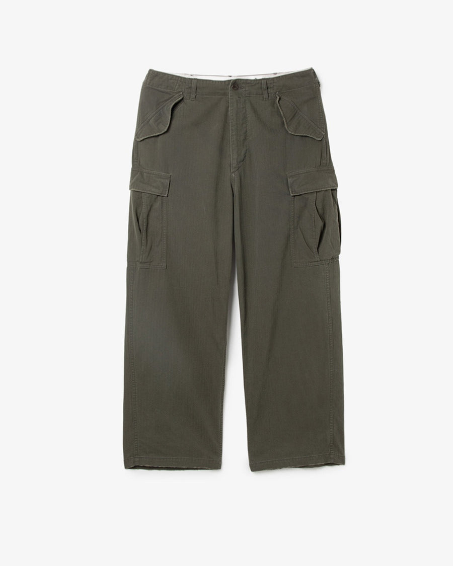 “VINTAGE US ARMY M-51 FIELD PANTS” in cotton with a balanced herringbone pattern.