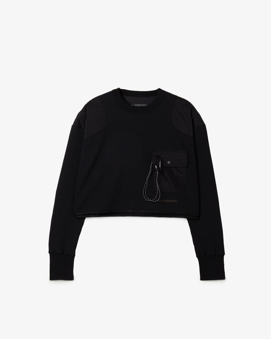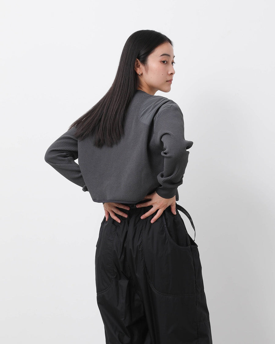 The WAFFLE SHORT LENGTH T (W) is made from lightweight, quick-drying polyester waffle fabric with excellent stretch recovery and features a pocket with a carabiner.