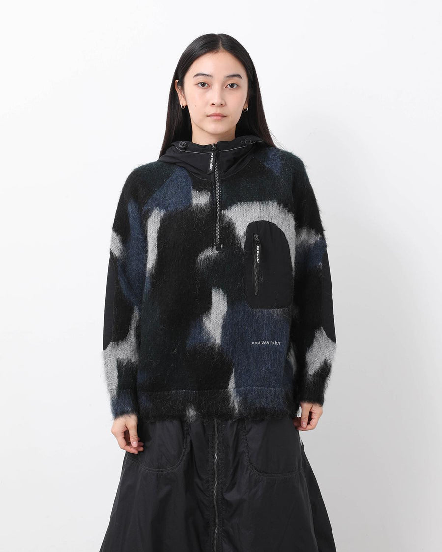 and wander MIX COLOR SHAGGY KNIT HOODIE (WOMEN'S)