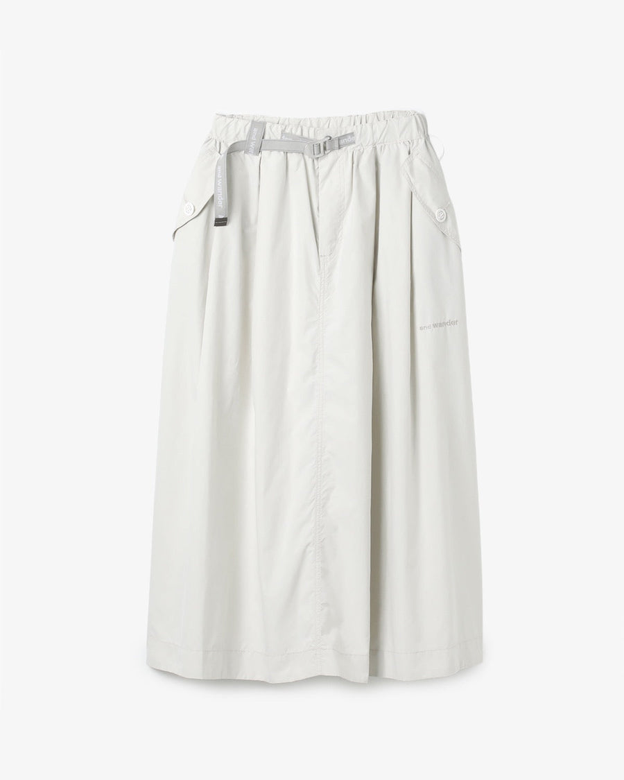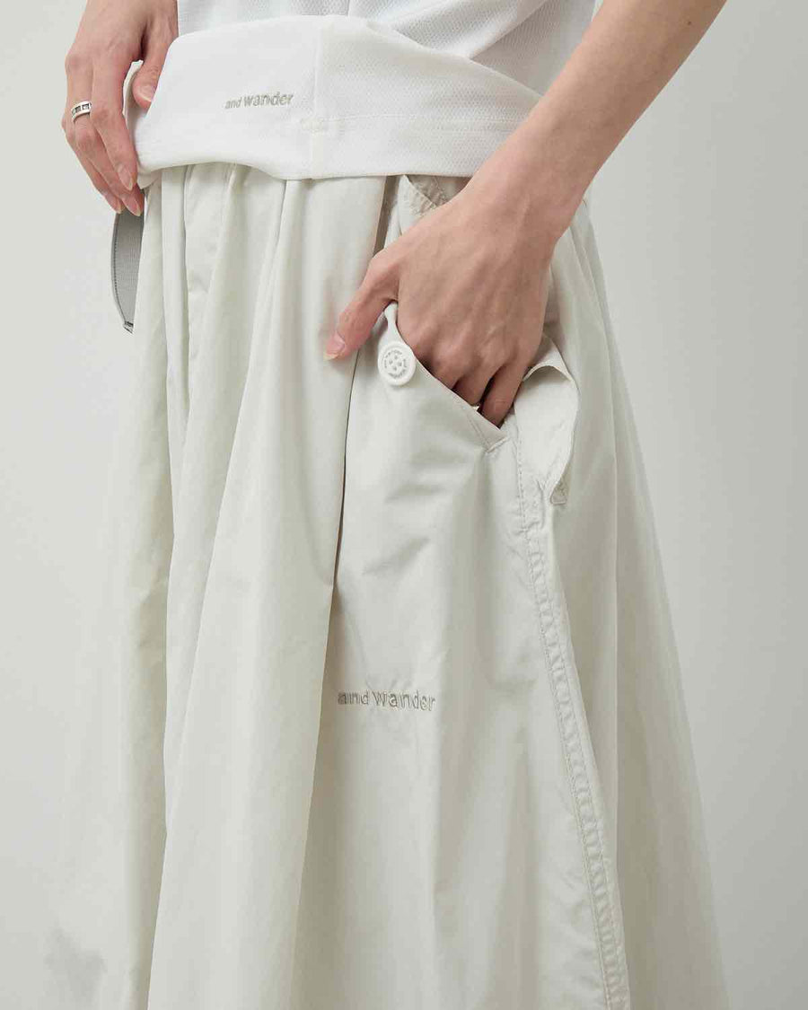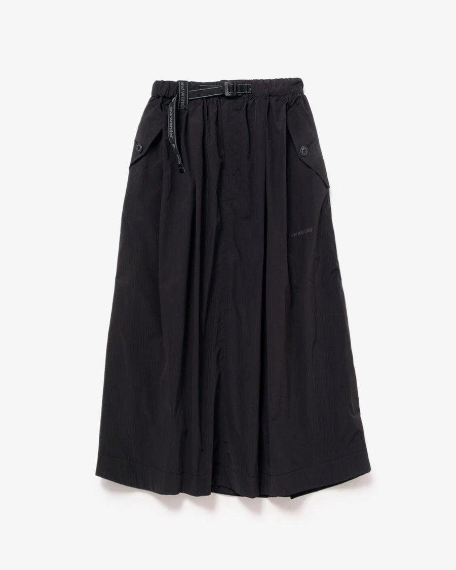 A long skirt in water-repellent ripstop made from high-density textured yarn, featuring an outdoor-inspired design with cargo-style pockets.