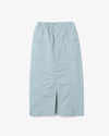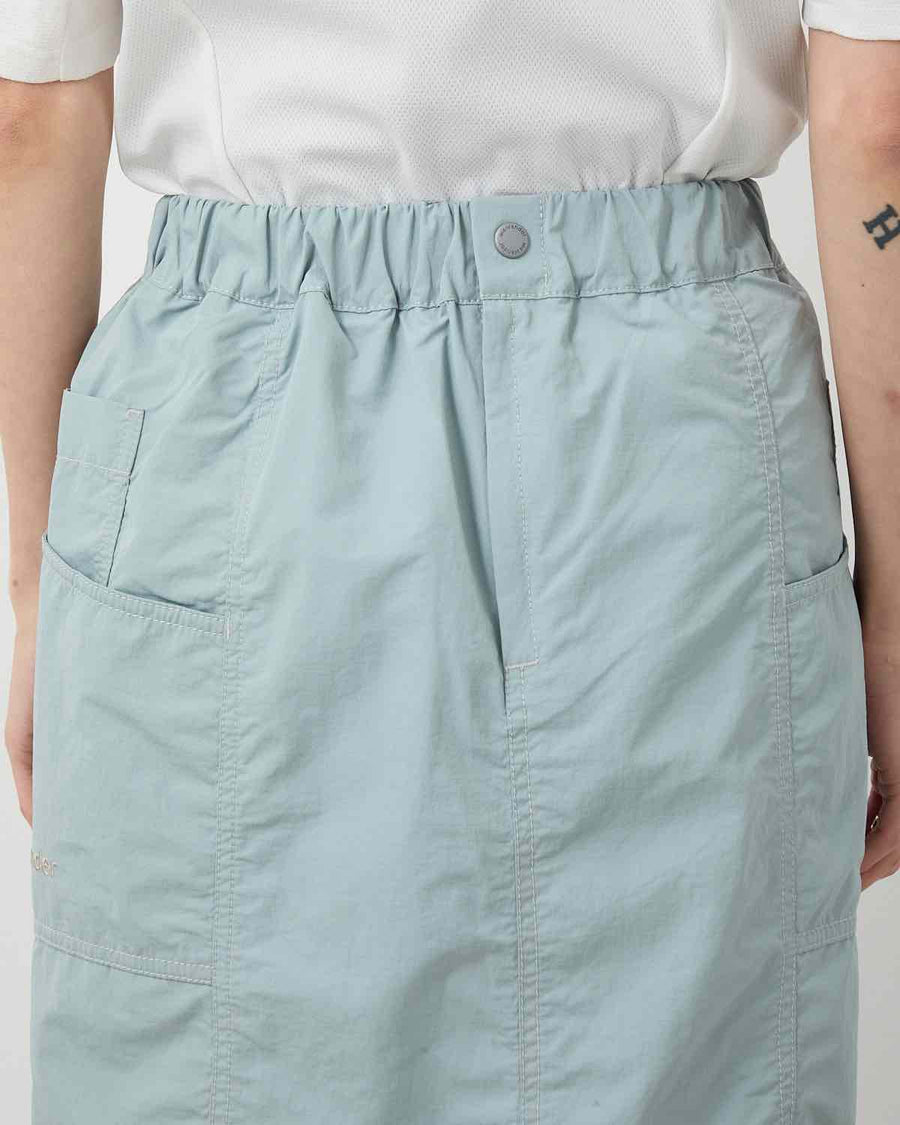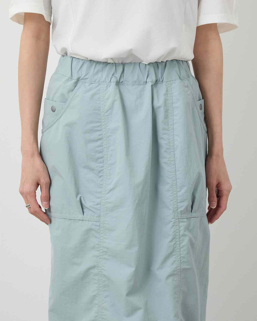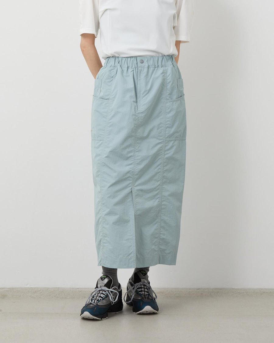 A tiered skirt in lightweight, water-repellent double-weave nylon, featuring a straight silhouette with W pockets for a sleek, stylish look.