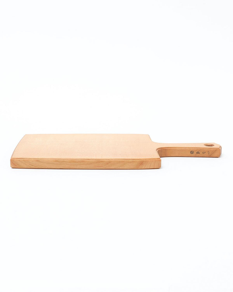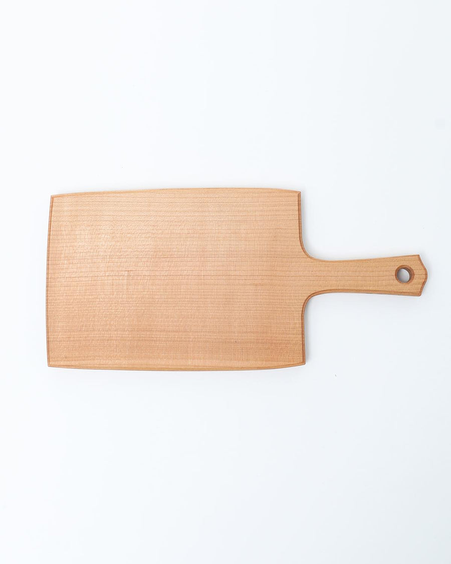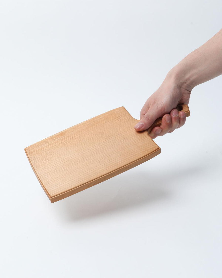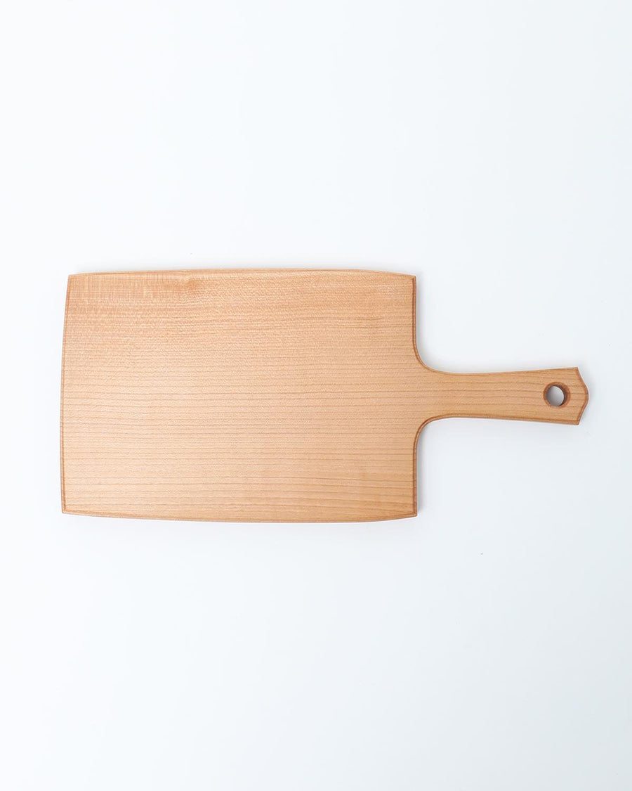 This cheese board is crafted from solid wild cherry wood and carefully finished with walnut oil Not just a cutting board, it doubles as a versatile serving plate with a convenient handle for easy transport. Its moderate hardness and resistance to warping make it ideal for various foods, from cheese and bread to cakes and Japanese sweets, promising long-lasting utility with proper care.