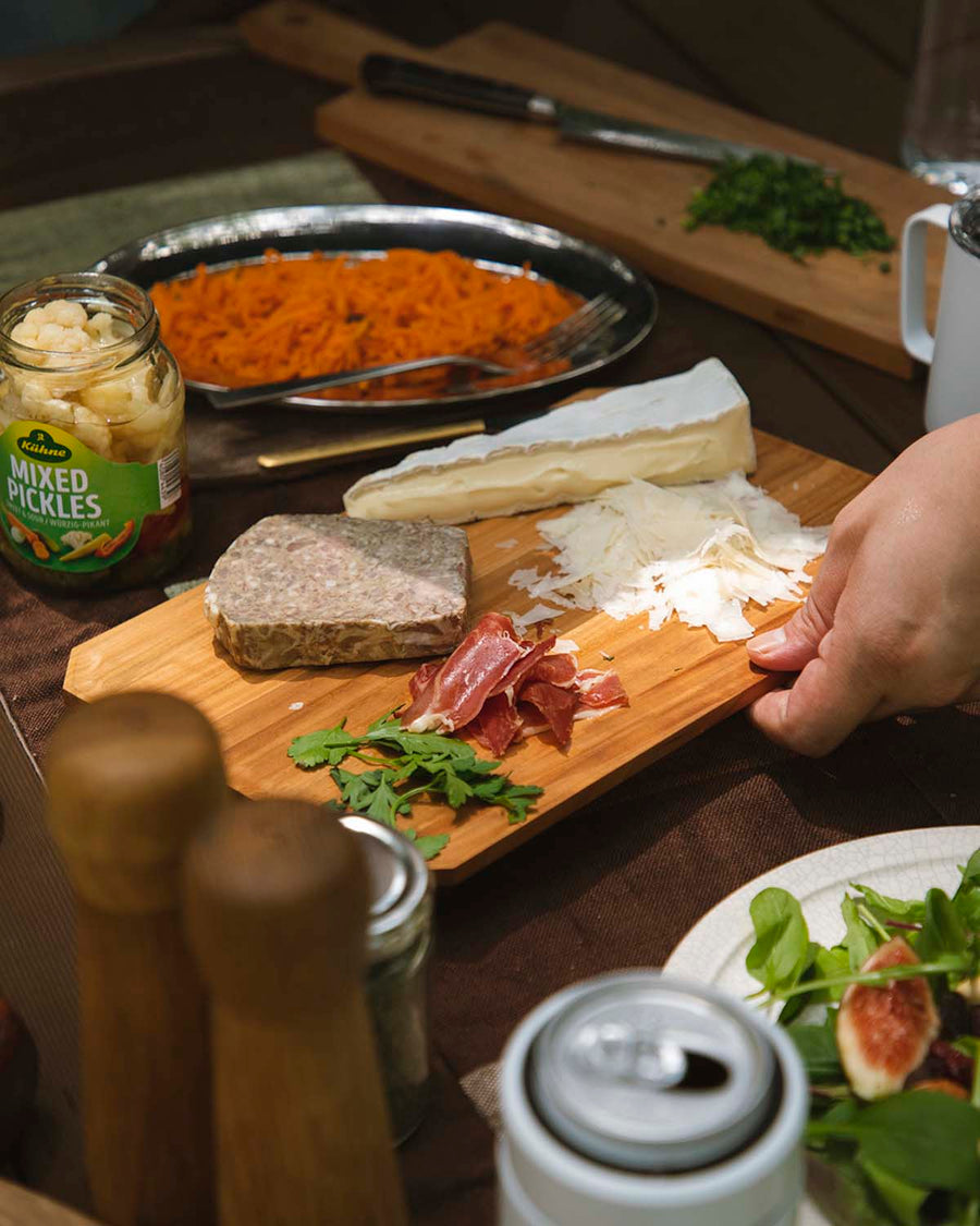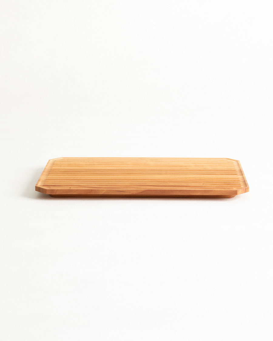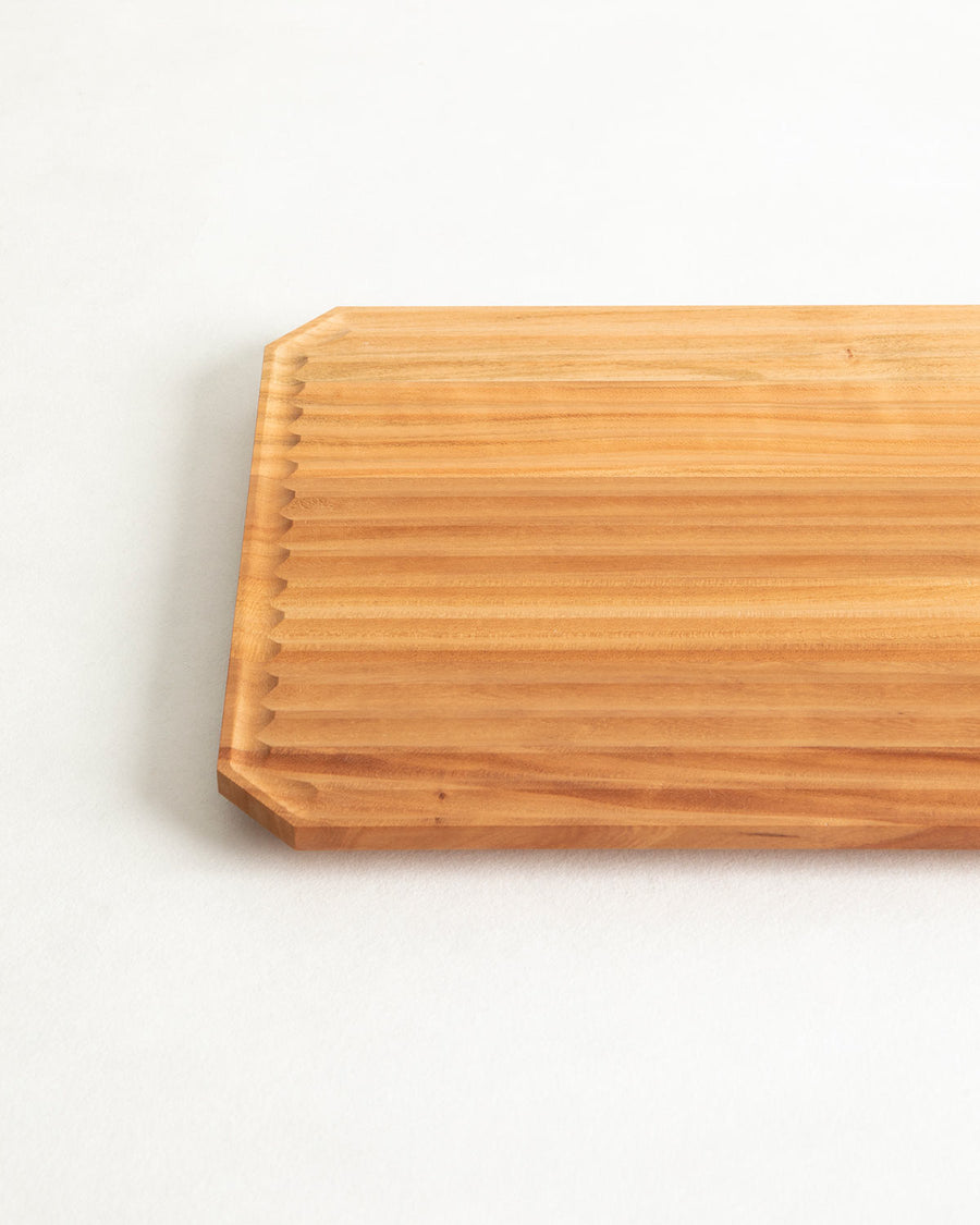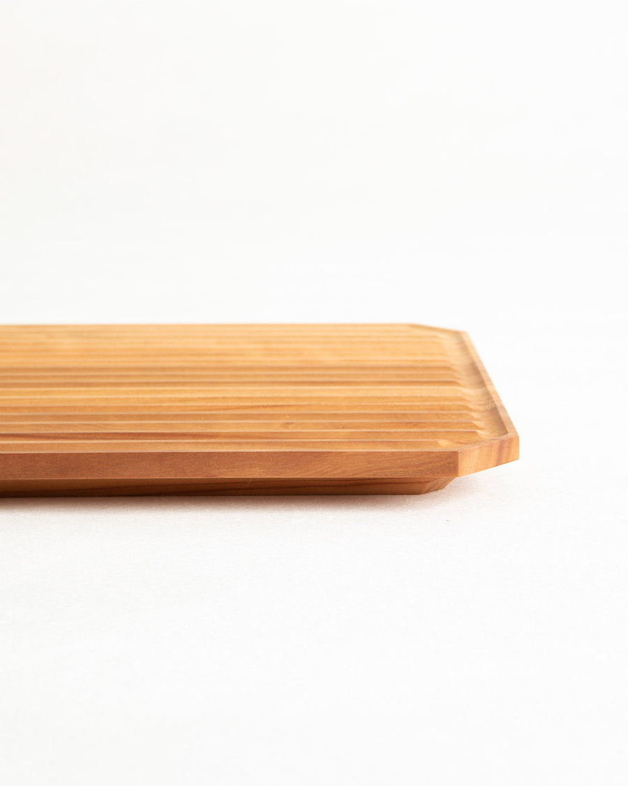 Initially designed for serving bread, the Charcuterie board is designed for serving a variety of dishes including ham, salami, and cheese for dinner parties. Its grooved finish aids in airing the placed foods and provides stable placement for cups and pots, making it ideal for outdoor use.
