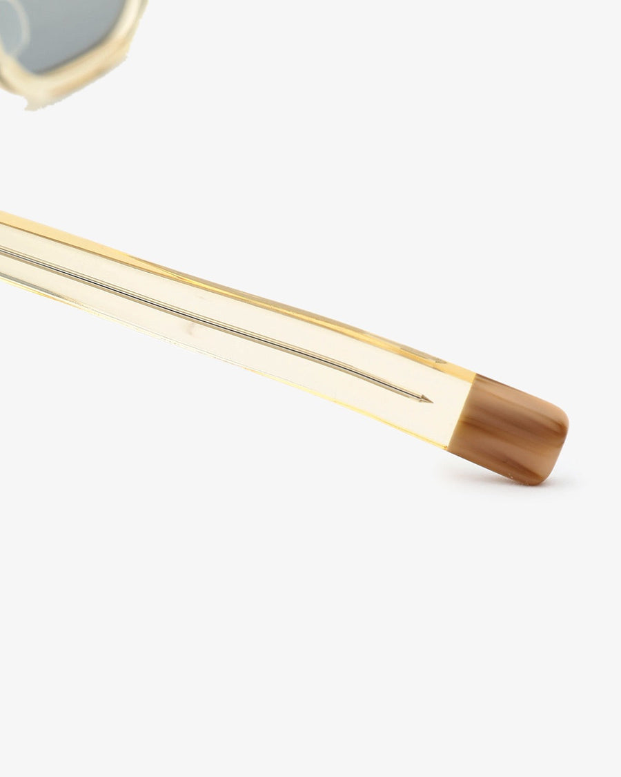 The BE008 sunglasses feature a bold, three-dimensional frame with minimal-shaped temples, crafted by skilled artisans in Sabae, Fukui.