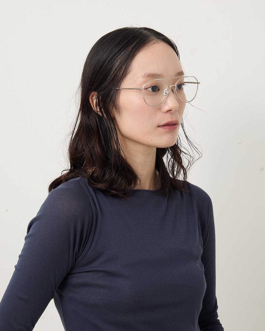 The B0042 is an all-titanium teardrop-shaped, two-bridge frame. Beta titanium temples provide flexible comfort, while the crown-panto-inspired upper rim offers an iconic yet face-friendly size.