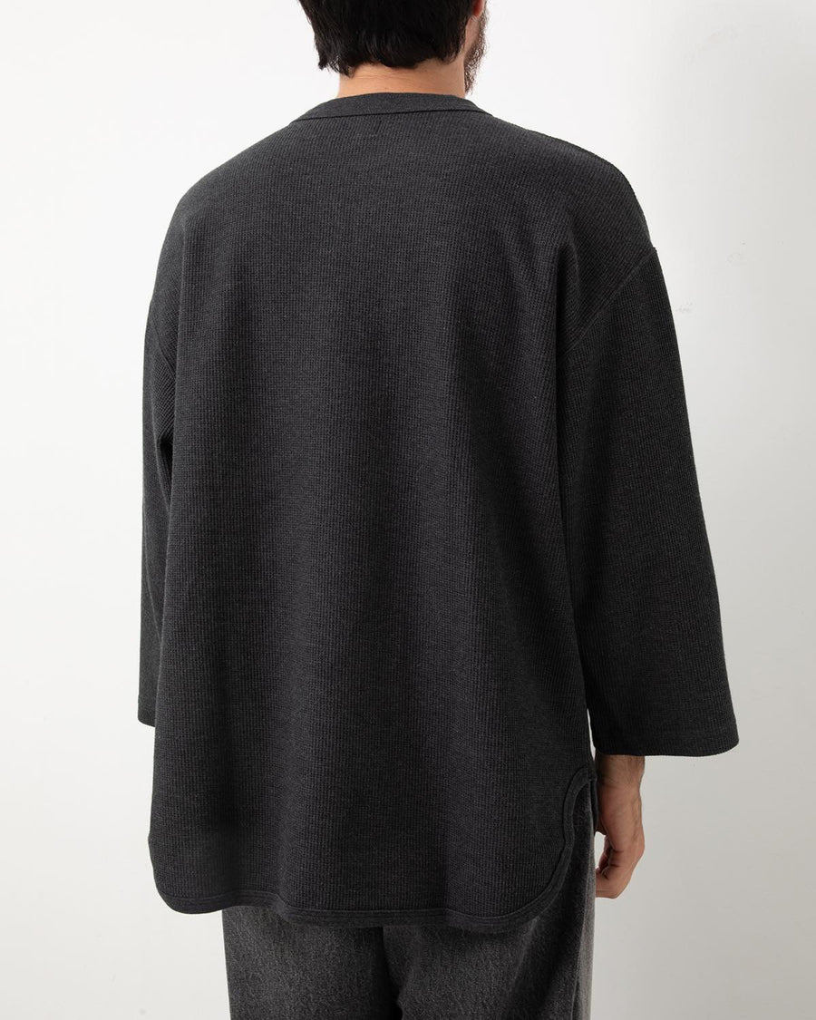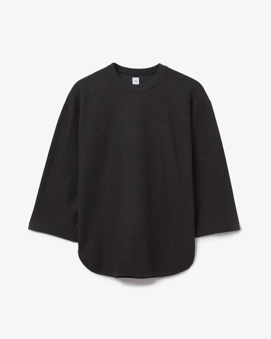 A thermal baseball T-shirt with a waffle-like front and soft back for comfort, absorbency, and durability.