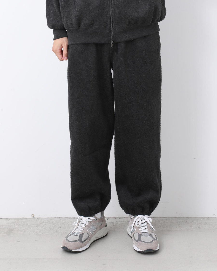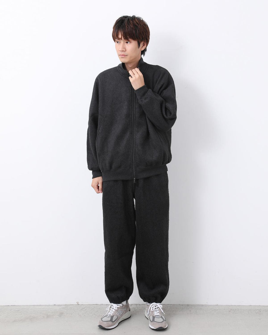 It pairs well with the 「PE/SILK FLEECE TRACK JACKET」 made from the same material.