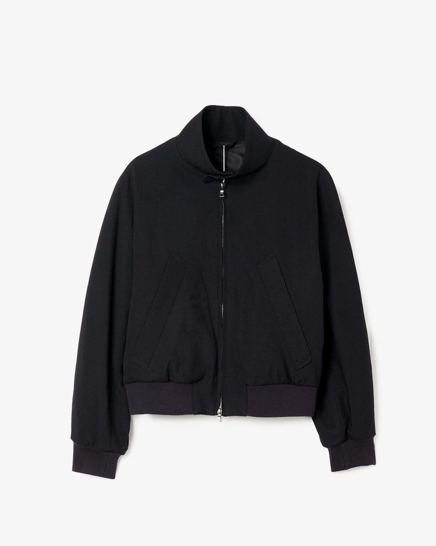 Crafted from wool gabardine with an uneven texture and refined wrinkle finish, this Harrington jacket features dolman-style sleeves that create a distinctive silhouette.