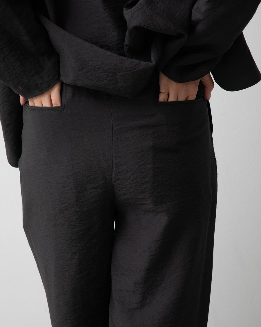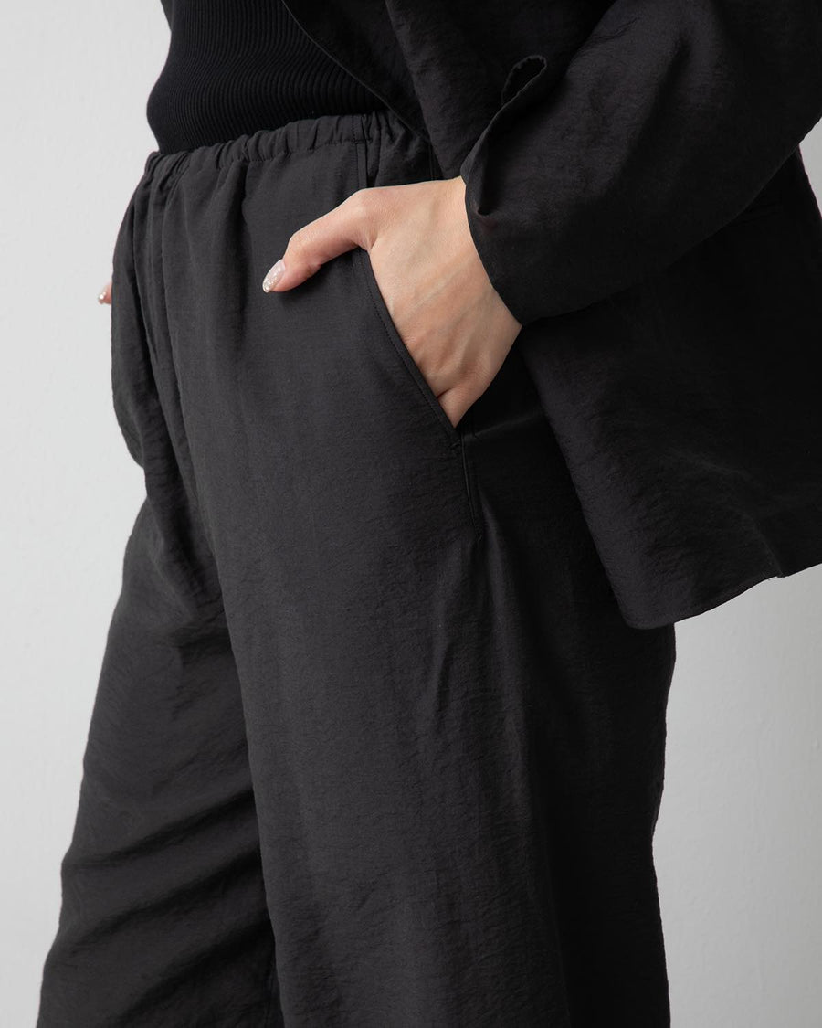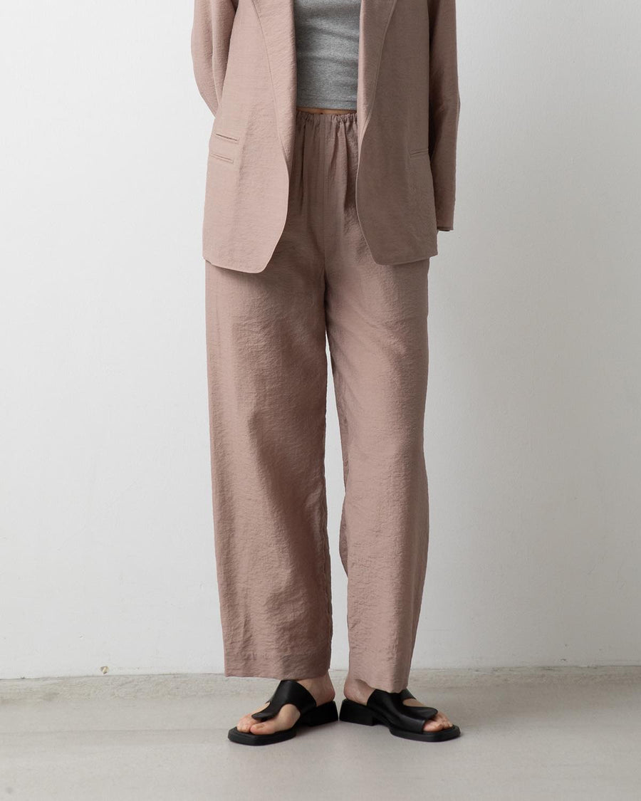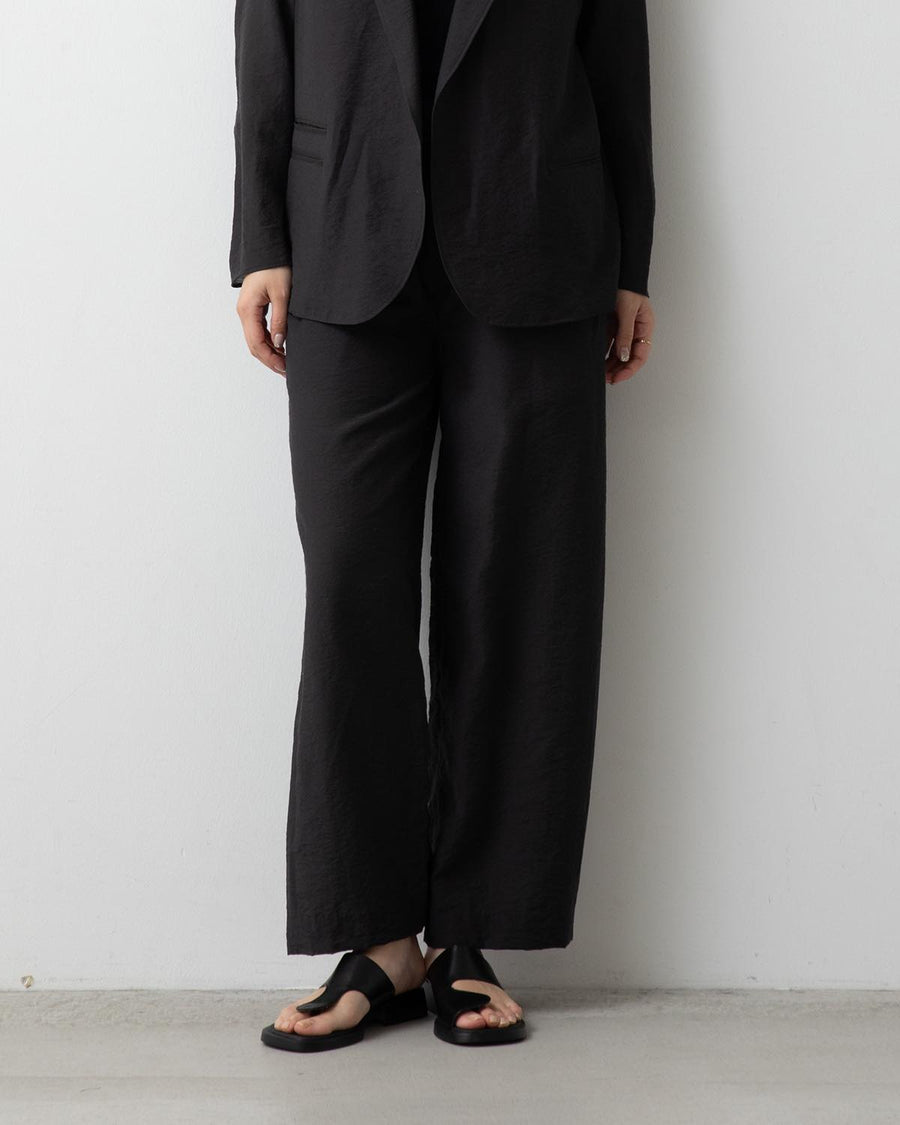 The NY-VI-LI Side Seamless Slacks are a lightweight, breathable blend of nylon, viscose, and linen, with a dry touch and soft drape.
