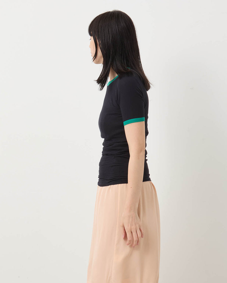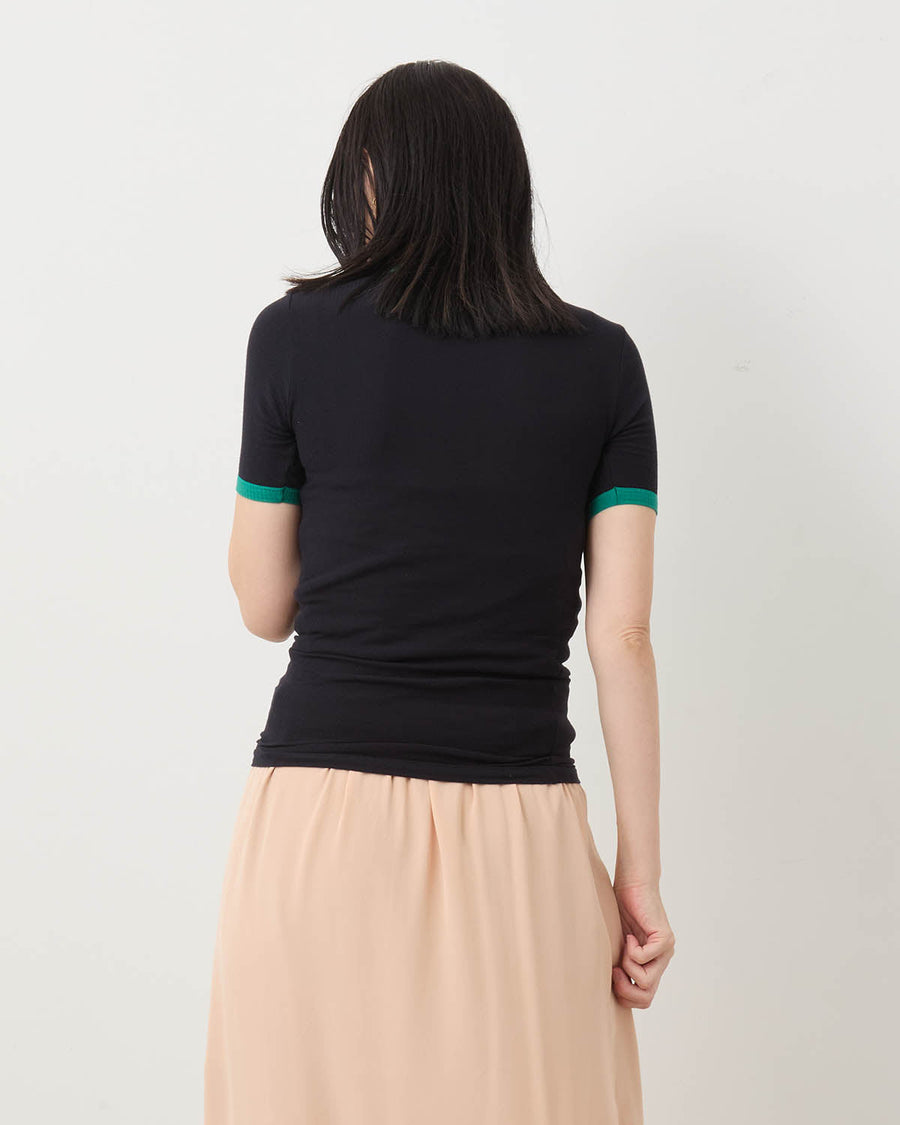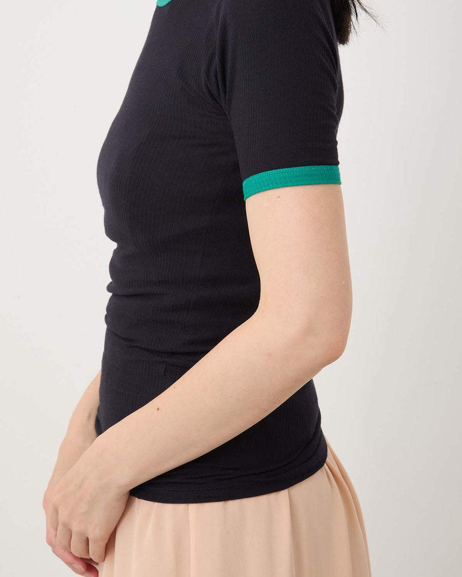This short-sleeve T-shirt is made from 100% organic cotton, featuring contrast piping rib at the neck and sleeves for a stylish accent.