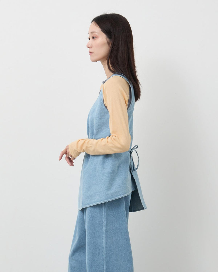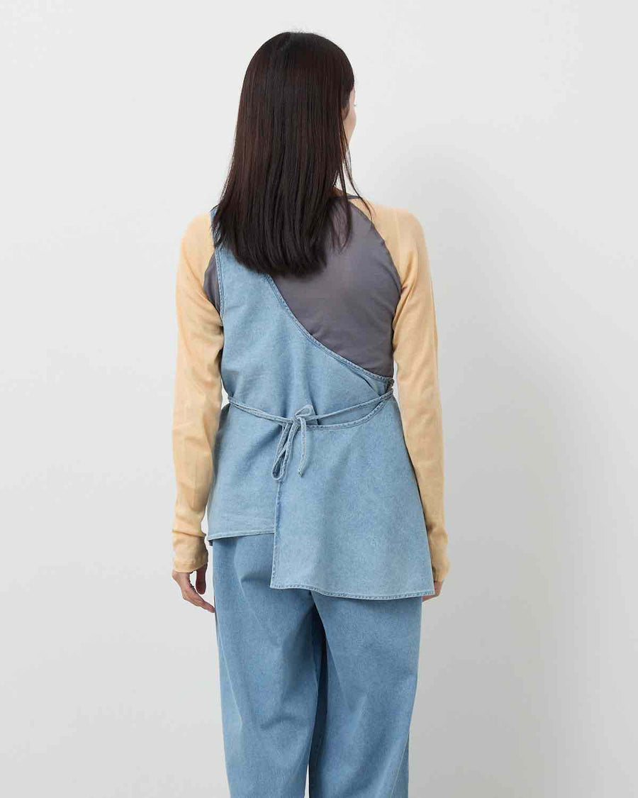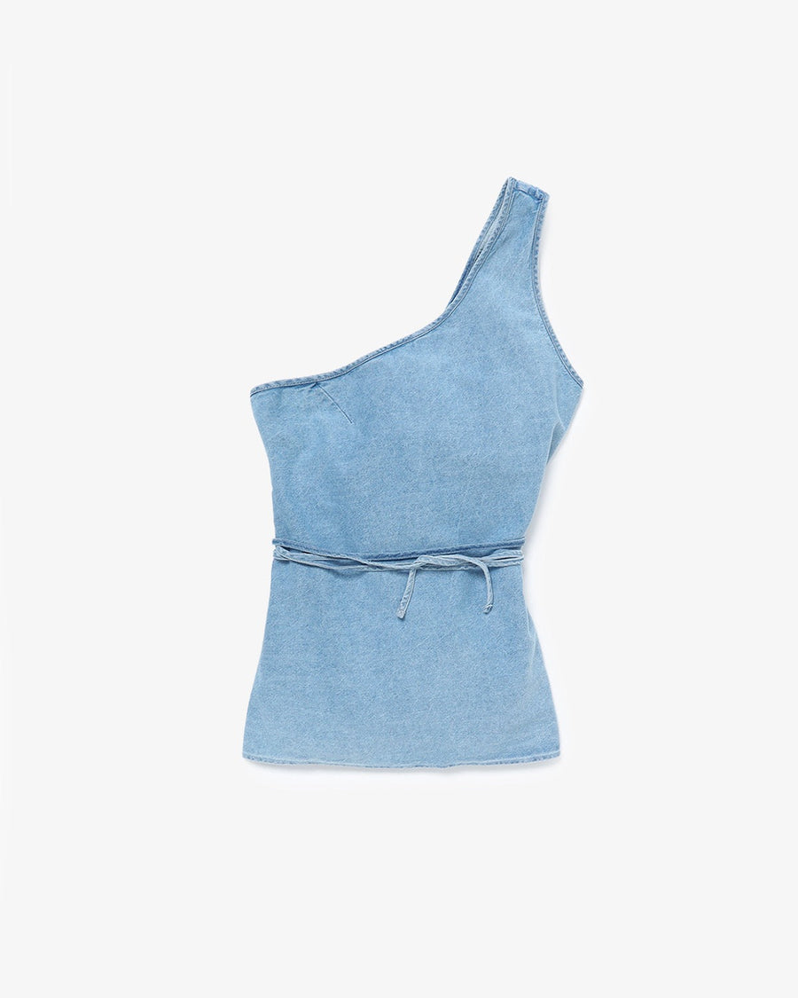 An asymmetrical one-shoulder top made from silk-cotton denim.