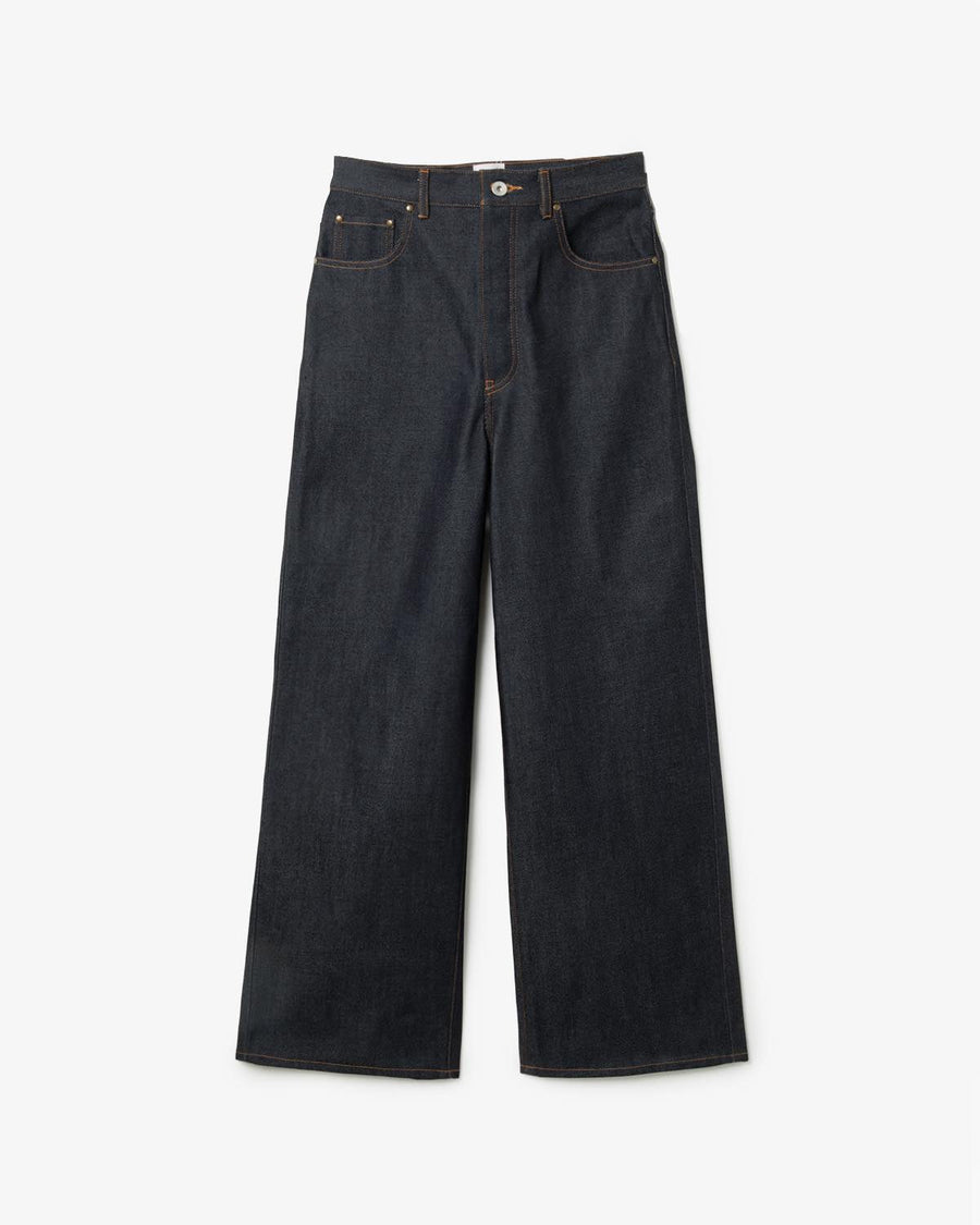 The BISOWN classic 5-pocket denim features a semi-wide silhouette and pure indigo-dyed cotton fabric for a soft, durable feel.
