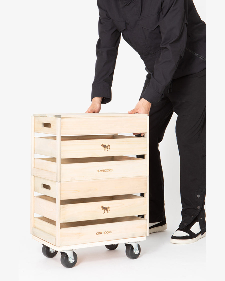Made of Japanese cypress wood, this stackable set of two wooden boxes from Nakameguro, Tokyo based COW BOOKS can be assembled in various ways to maximize your at-home storage.