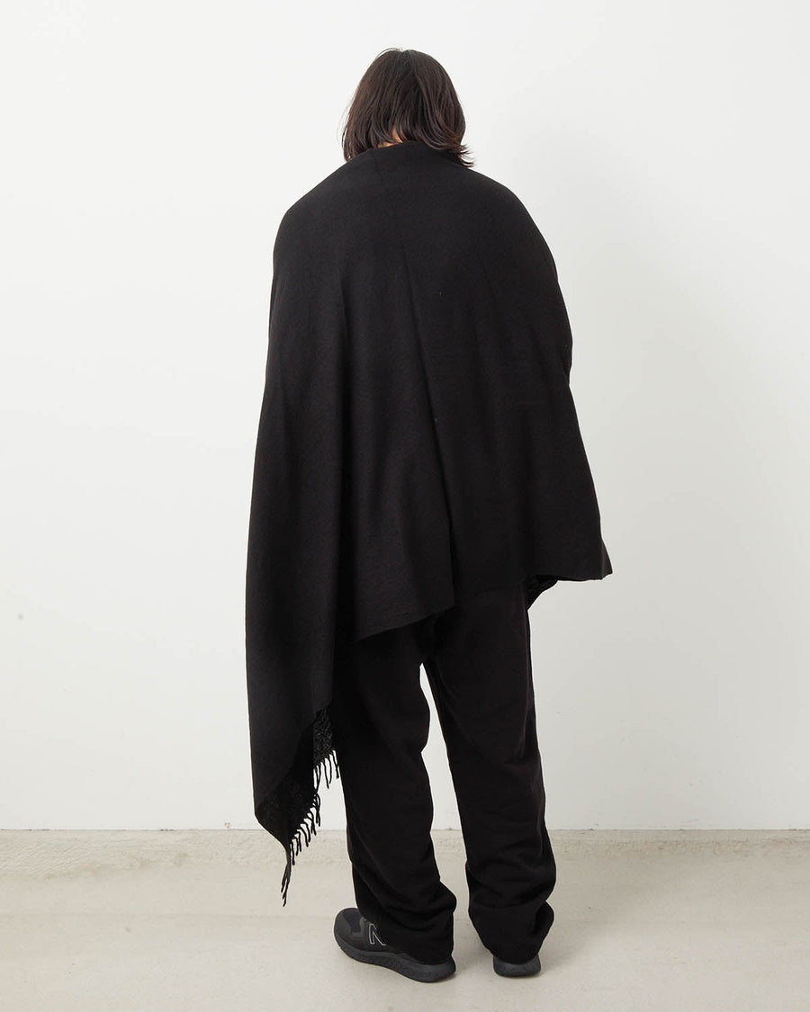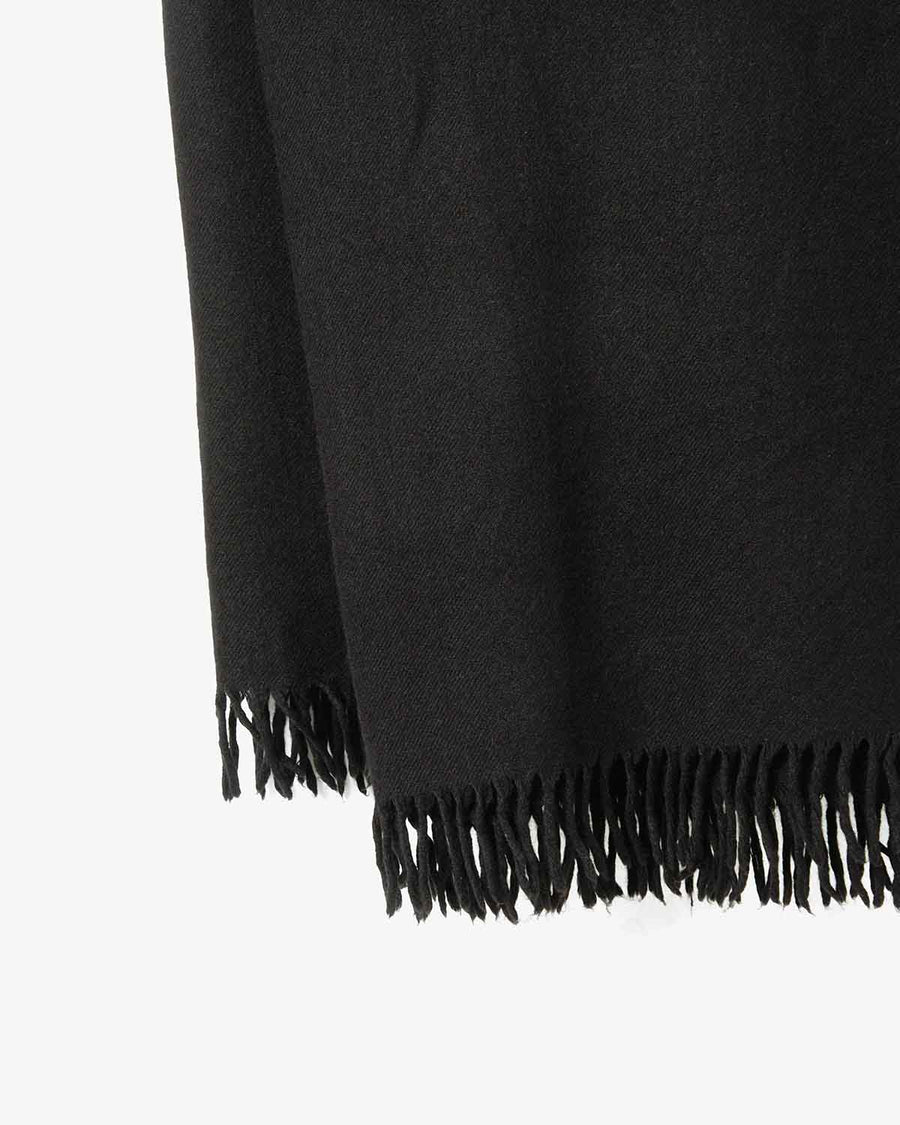 A black scarf made from 100% cashmere. Its large size is paired with a thin, lightweight construction, making it easy to carry and perfect as a light layer.