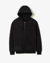 This zip-up hoodie is made from unfaded black cotton fleece and finished with a washed treatment. Its simple, effortless style makes it easy to wear and versatile for everyday looks.