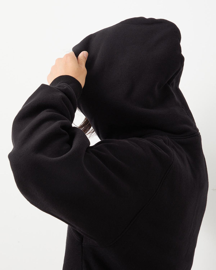 フロントジップ仕様のジャケットなどに着れるパーカがあれば、という思いから誕生しました。