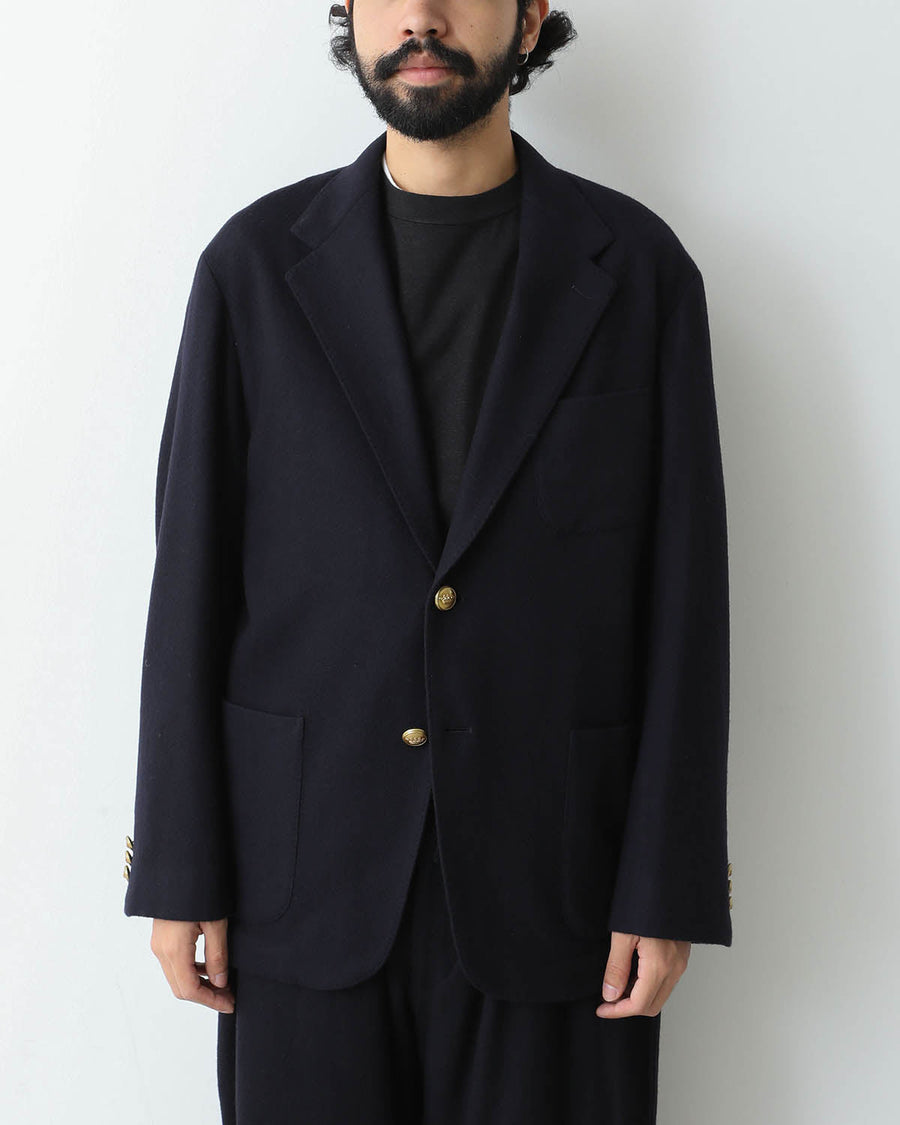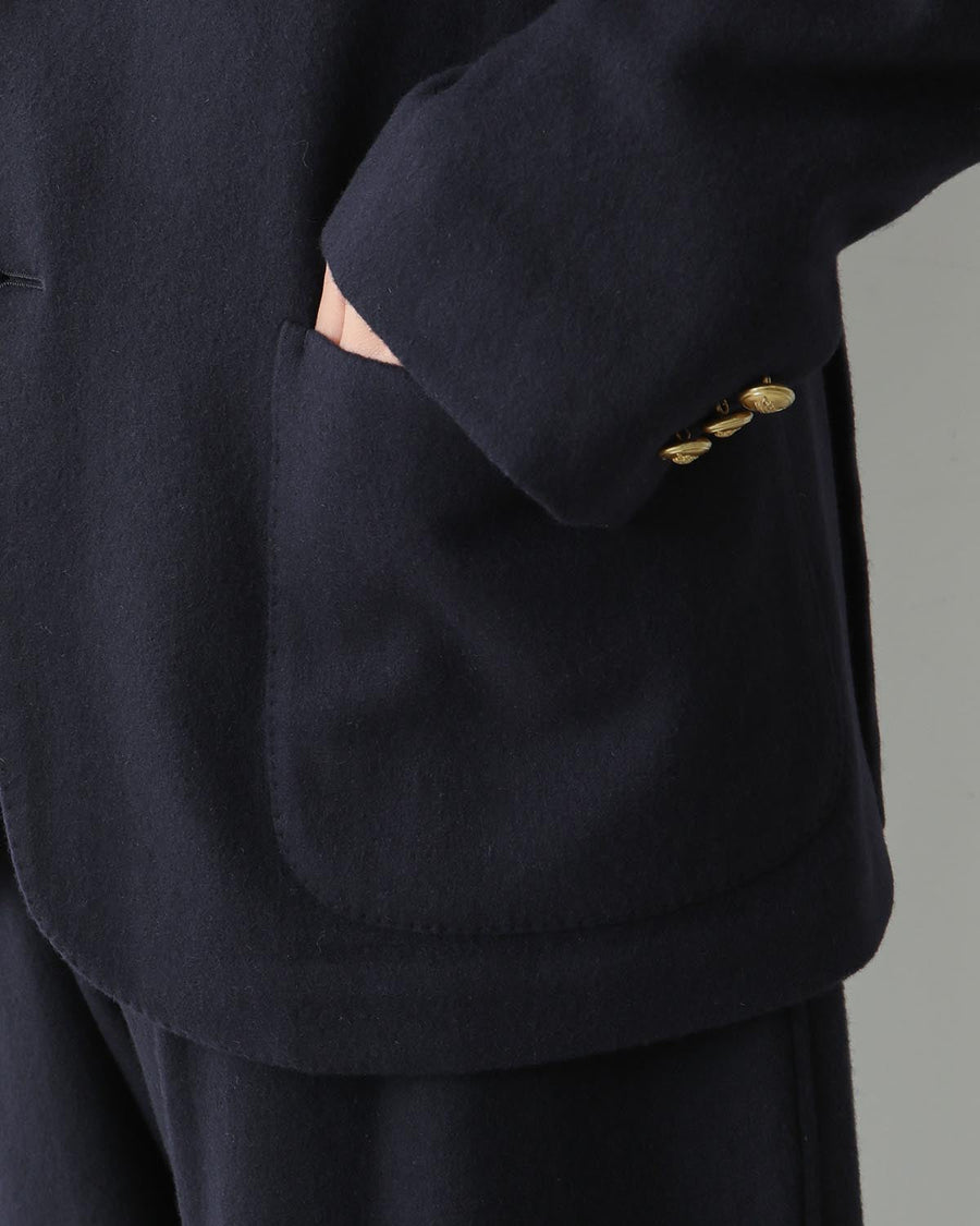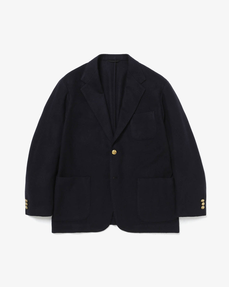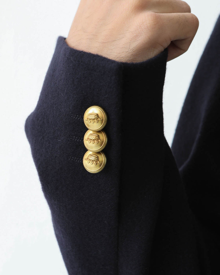 This blazer is made from 100% cashmere, offering an exceptionally light and soft texture. It features side vents for added mobility.