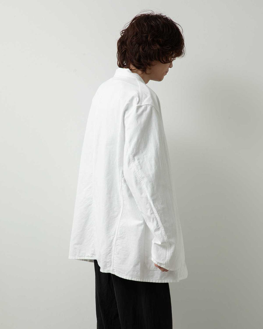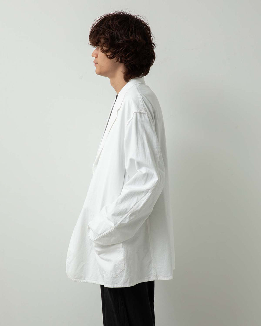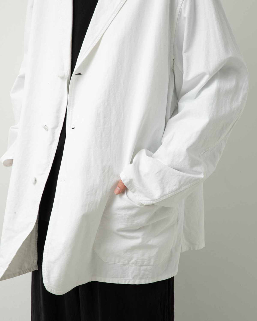 This white oxford jacket is pigment-dyed for a crisp feel that softens over time, designed to layer over dark styles.