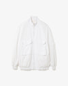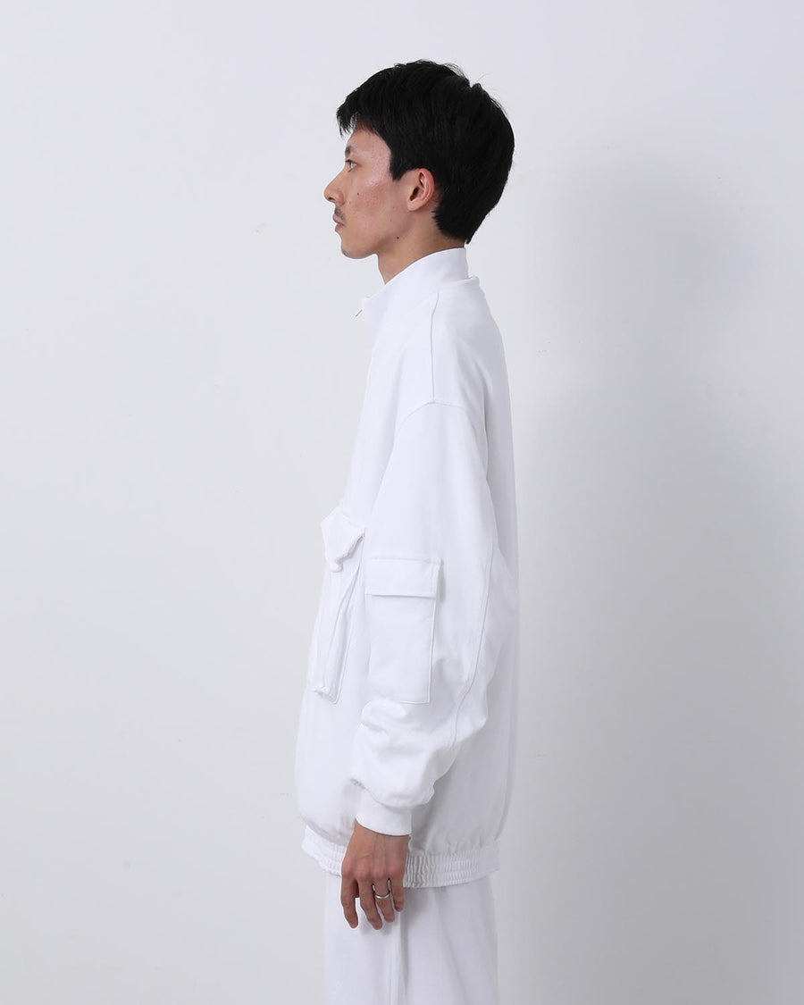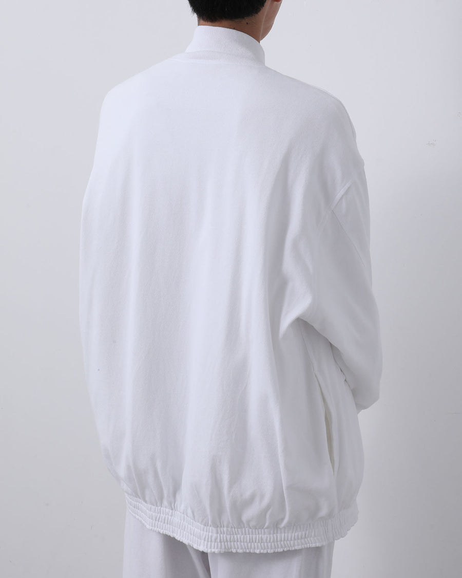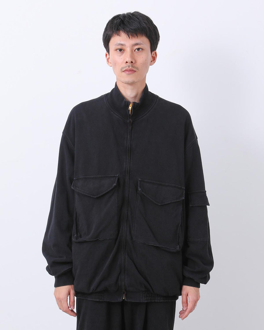 This G8 jacket uses the same heavyweight jersey as the SS cotton tuck pants, fully lined with woven fabric for both drape and volume. Over time, wear and washing create a distinctive faded look.