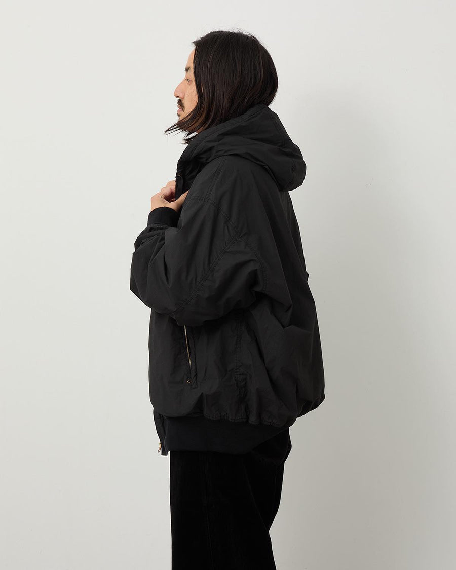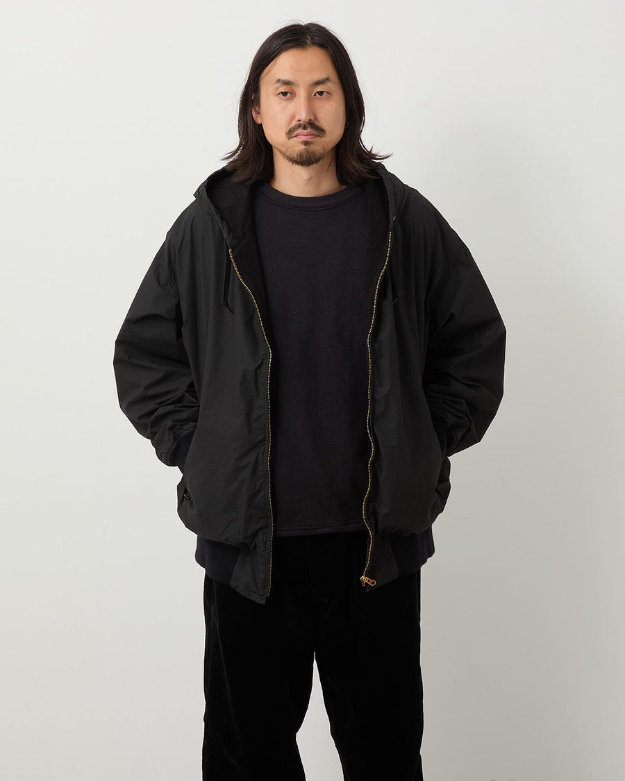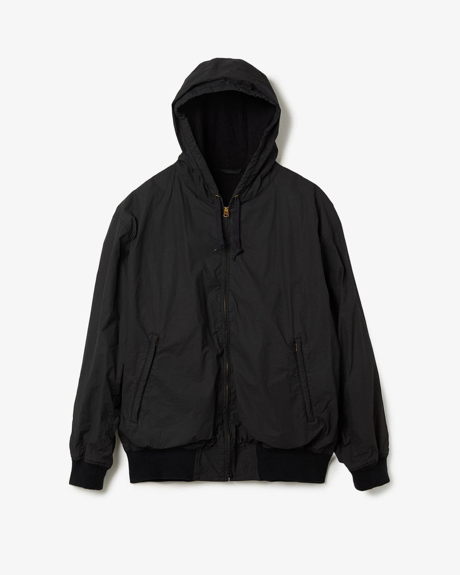 A matte cotton-nylon zip-up hoodie with a dry, textured feel, garment-washed for natural puckering and subtle sheen over time.