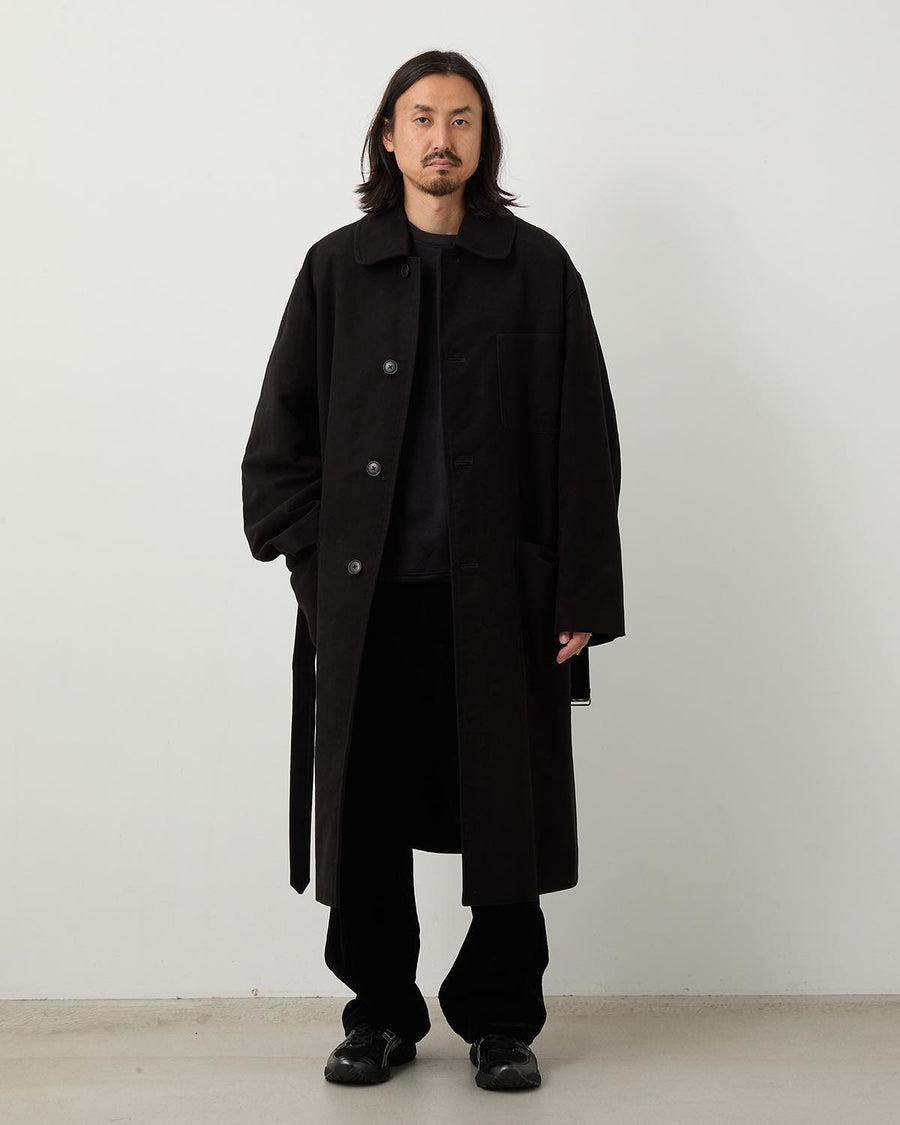 継続して展開しているミリタリーコート型を、今季はモールスキン素材で製作しました。