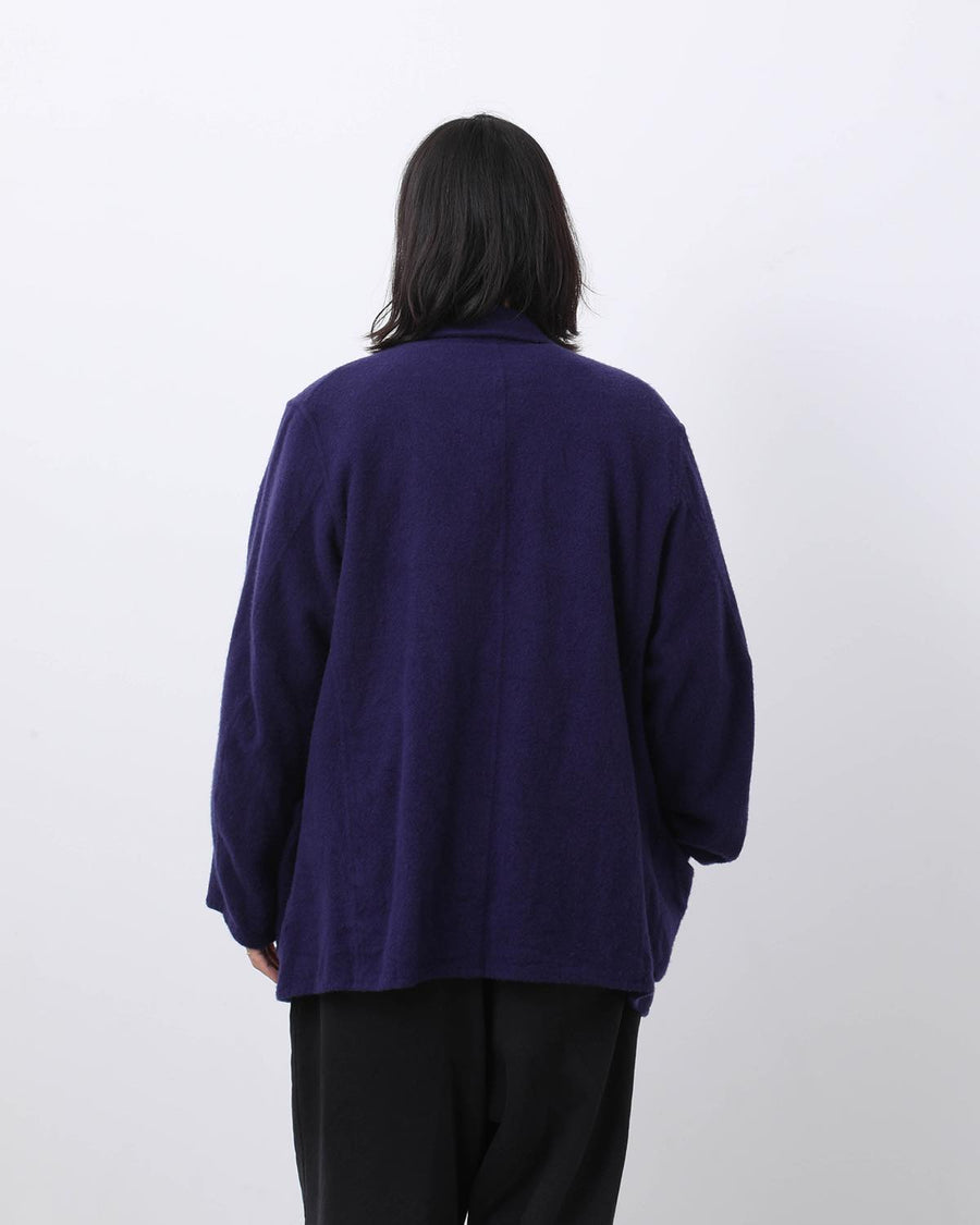 Our classic felted wool jacket returns this season in a new color: PURPLE BLUE.This deep blue with a subtle reddish tone is designed to layer beautifully over all-black styling.