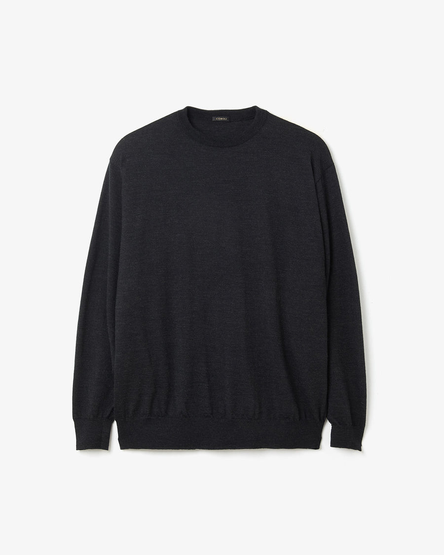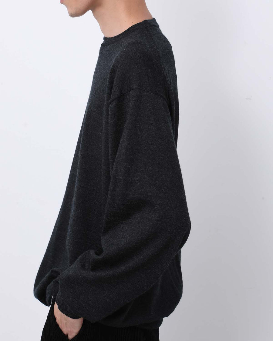 This crewneck knit is made from firm, structured wool for a bold, three-dimensional shape. The wavy edges of the ribs are left unfinished, giving it a natural expression.