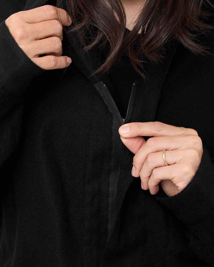 This all-in-one, crafted from soft cashmere-silk, features a garment-dyed, naturally fluffy texture and a lighter, more comfortable fit for effortless layering and waist styling.
