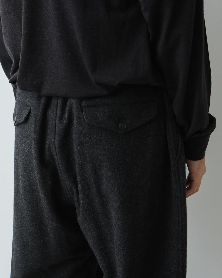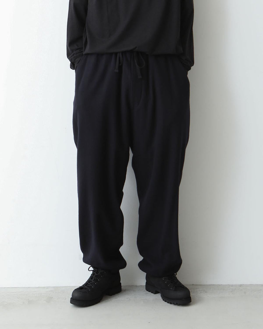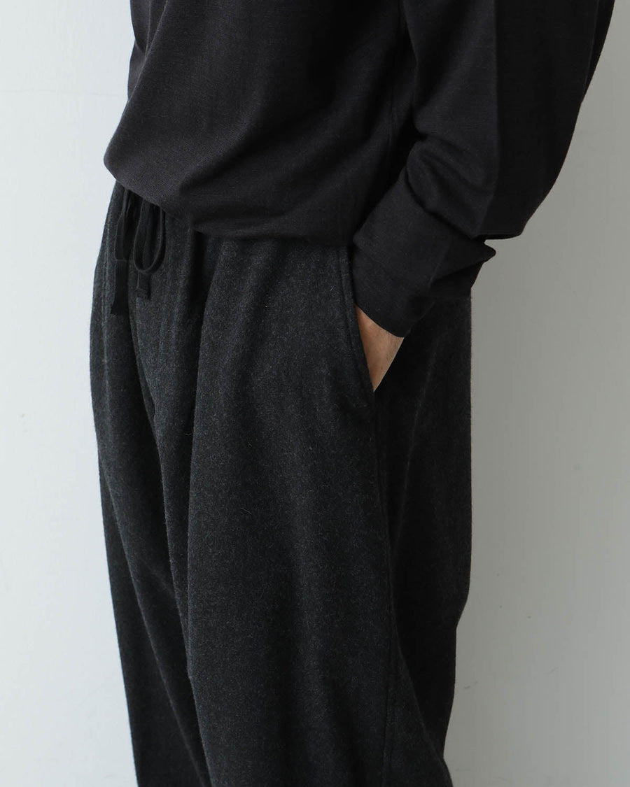 These easy trousers are made from 100% cashmere, offering a lightweight, soft, and smooth feel. The relaxed design with a drawcord waist is a staple from COMOLI, blending comfort with sophistication.