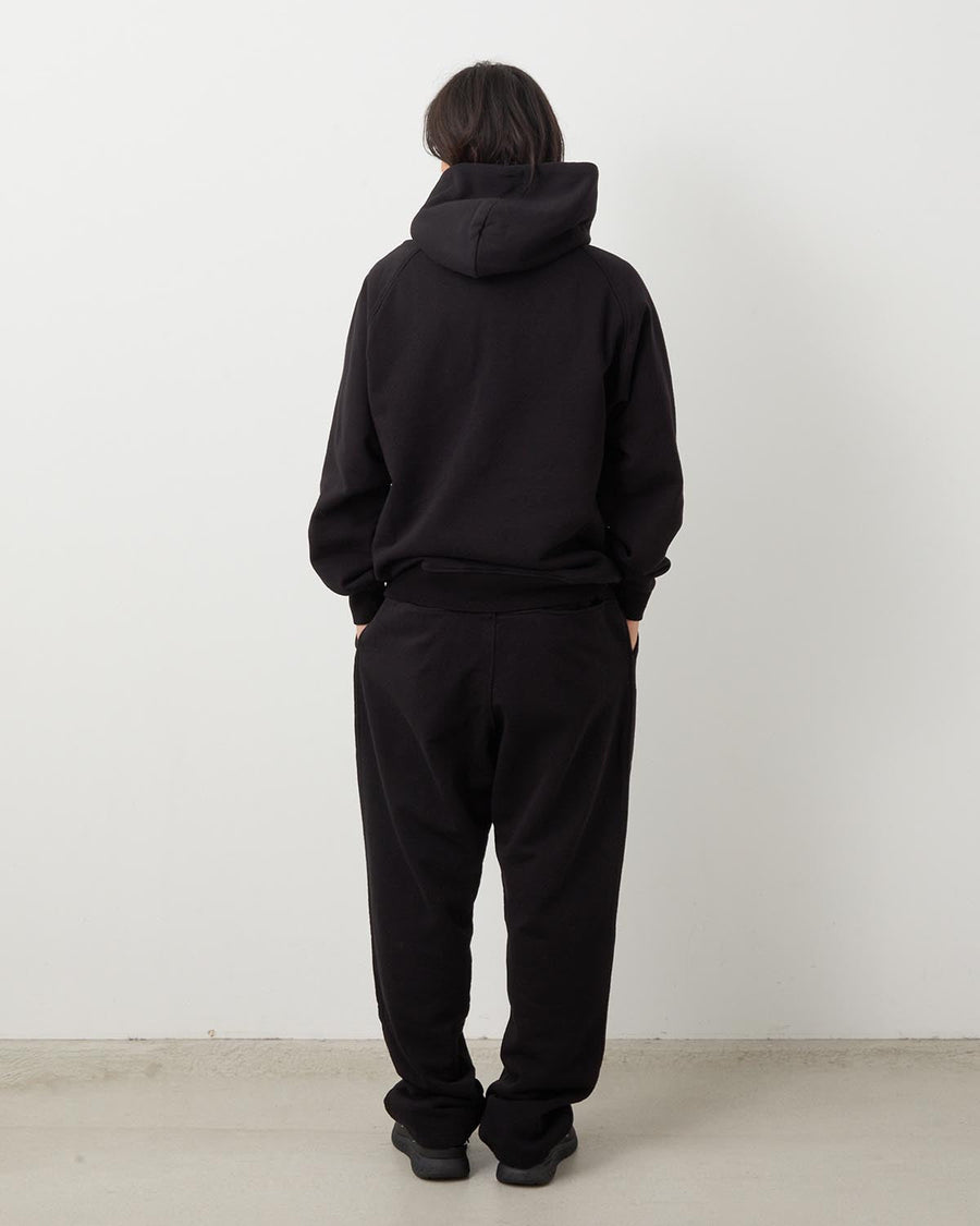 Easy trousers in unfaded black cotton fleece with a washed finish, featuring a relaxed, COMOLI-typical silhouette.