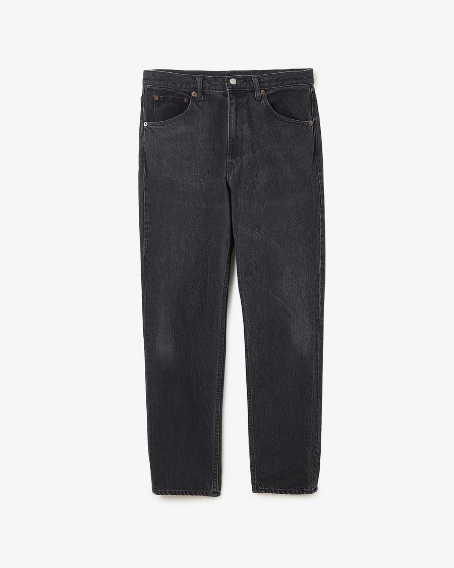 Slim 5-pocket denim with a slight taper from knee to hem. Finished to resemble naturally faded, classic denim.