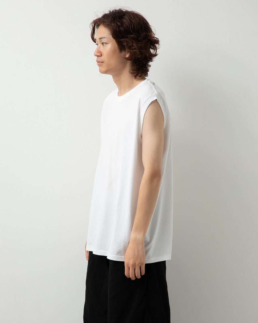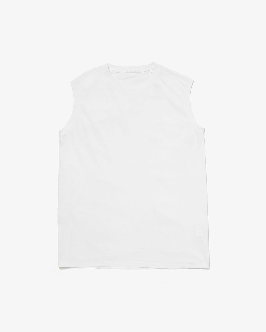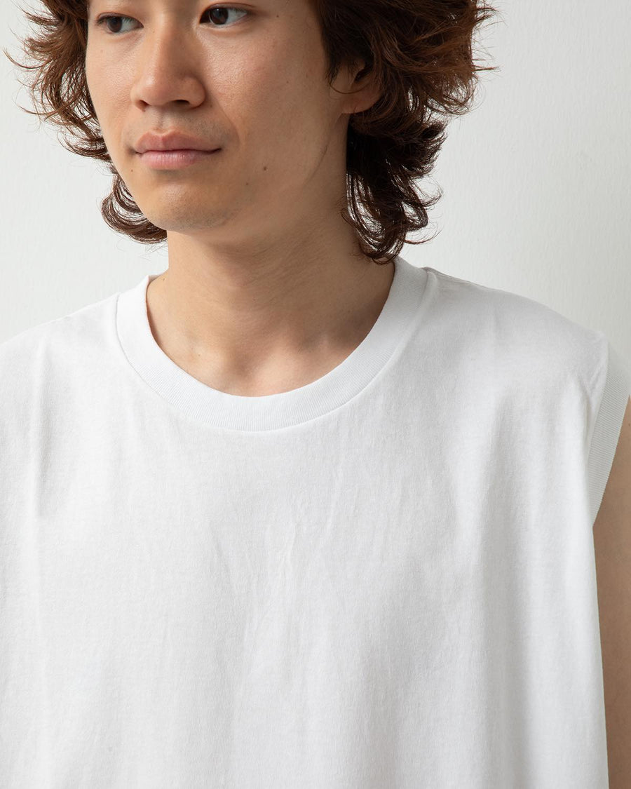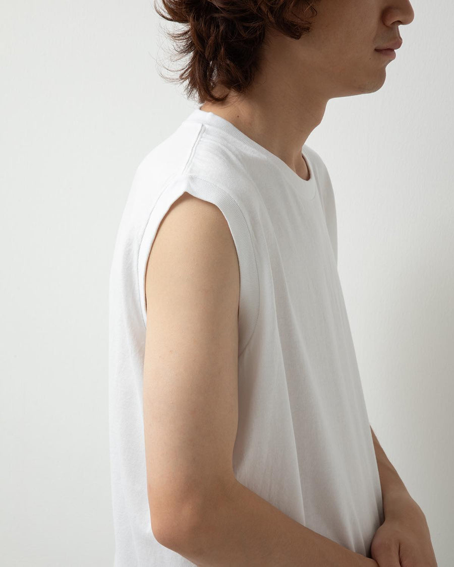This sleeveless cut-and-sew is made from cotton jersey, featuring COMOLI’s signature minimal design.