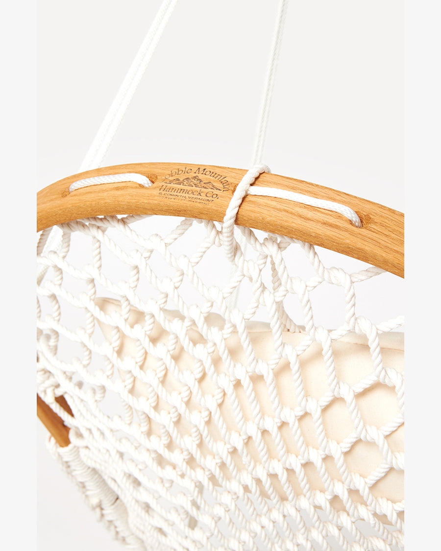 At COBBLE MOUNTAIN HAMMOCK COMPANY all products are made by hand in a century old mill located in the hills of Vermont. Pride in quality and craftsmanship is evident by the Vermont artisans' autographed card attached to every hammock chair. COBBLE MOUNTAIN are also committed to the welfare of the environment, with the oak used in each chair being harvested from sustainable forests.