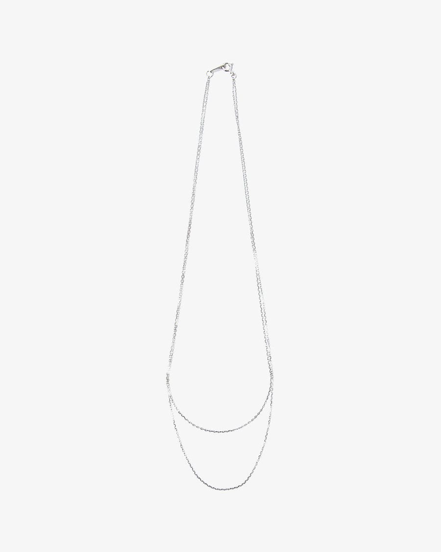 A short necklace with layered delicate chains, double-coated and protected with a clear film to repel sweat and oils.