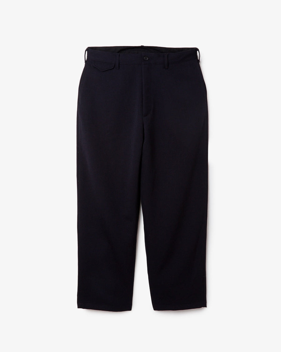 These officer pants feature a simple, understated design with a slightly wide tapered silhouette. Highly versatile, they pair effortlessly with both casual and dressy styles.