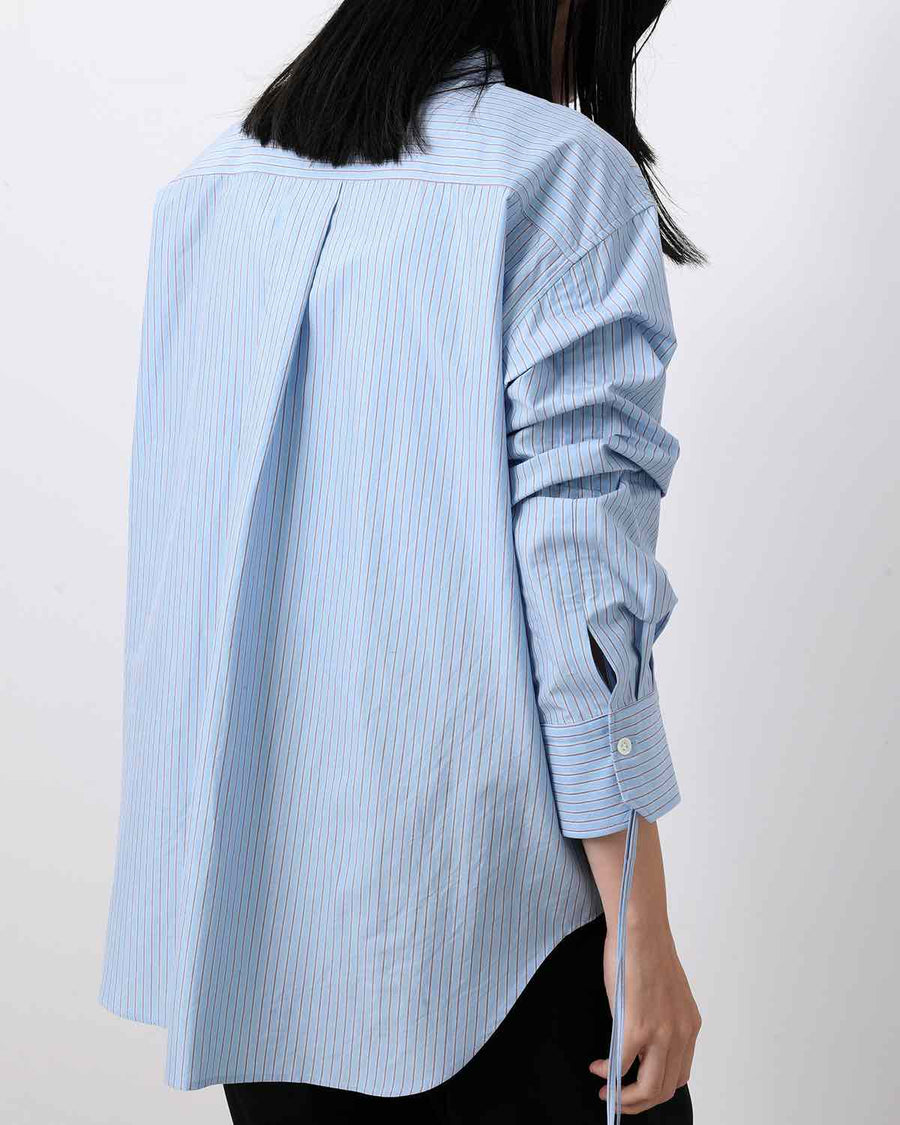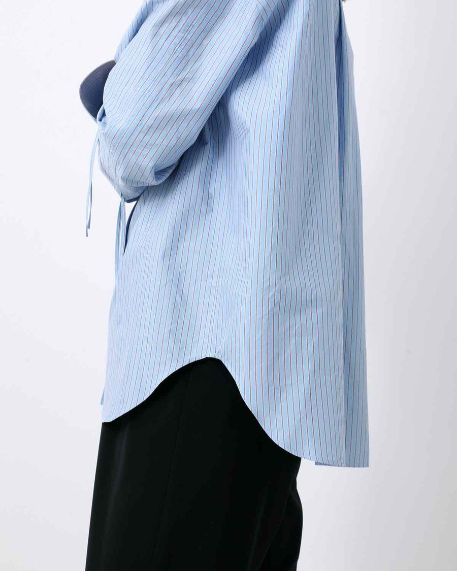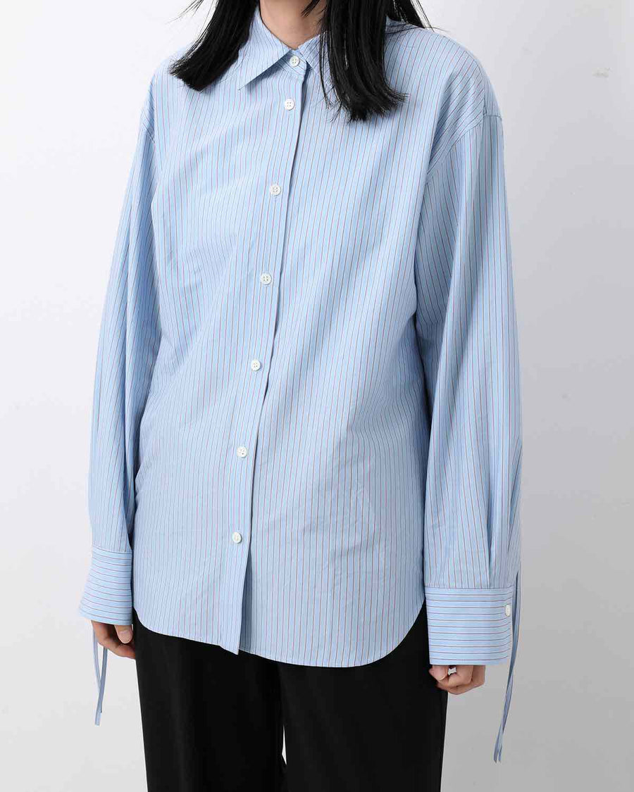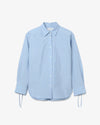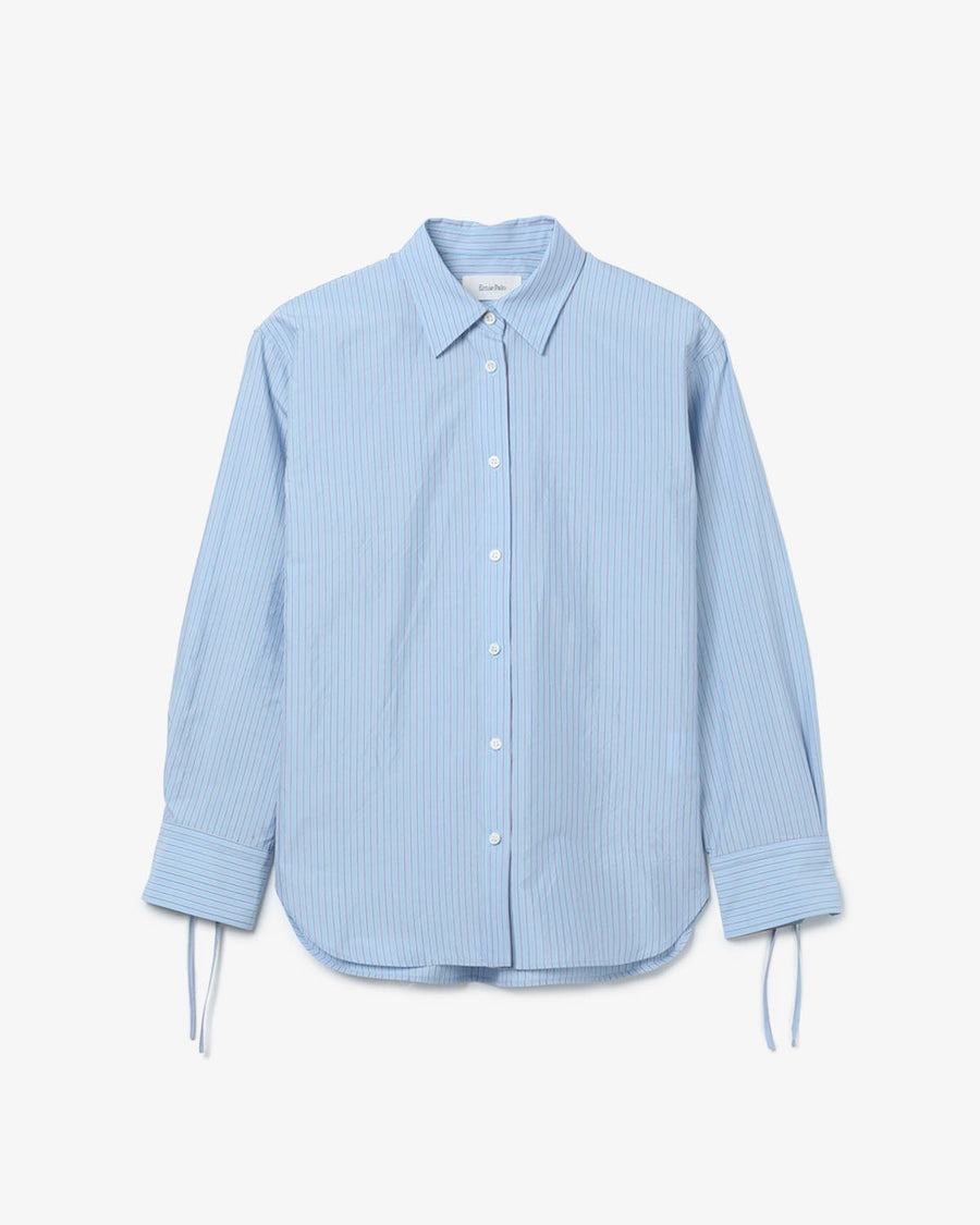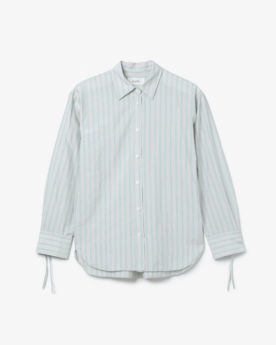 Long-sleeve shirt in silk-cotton striped fabric, featuring a clean silhouette with drawcord accents on the sleeves.