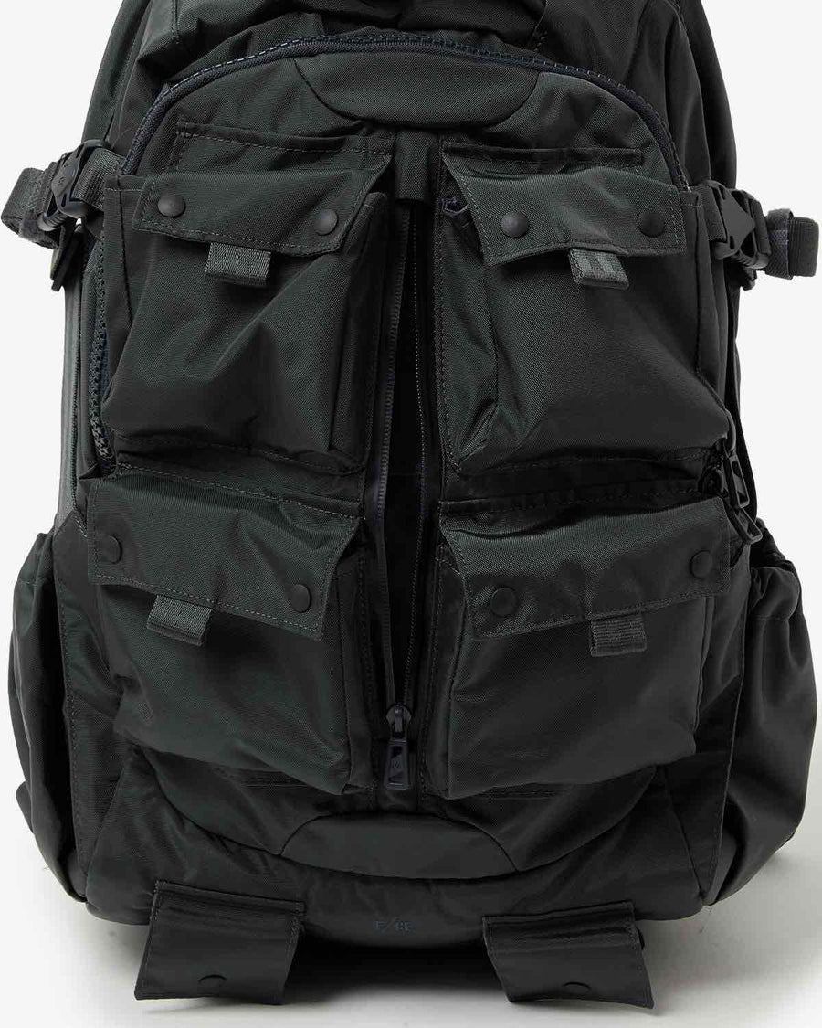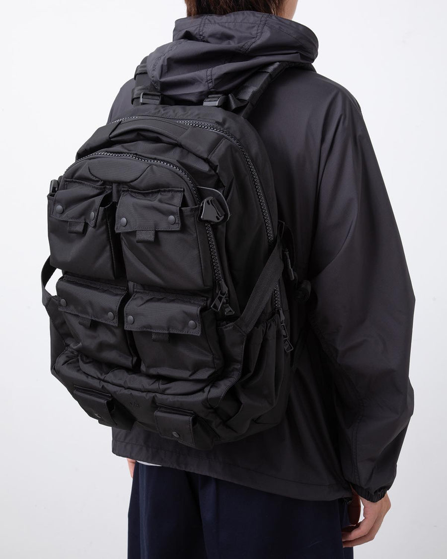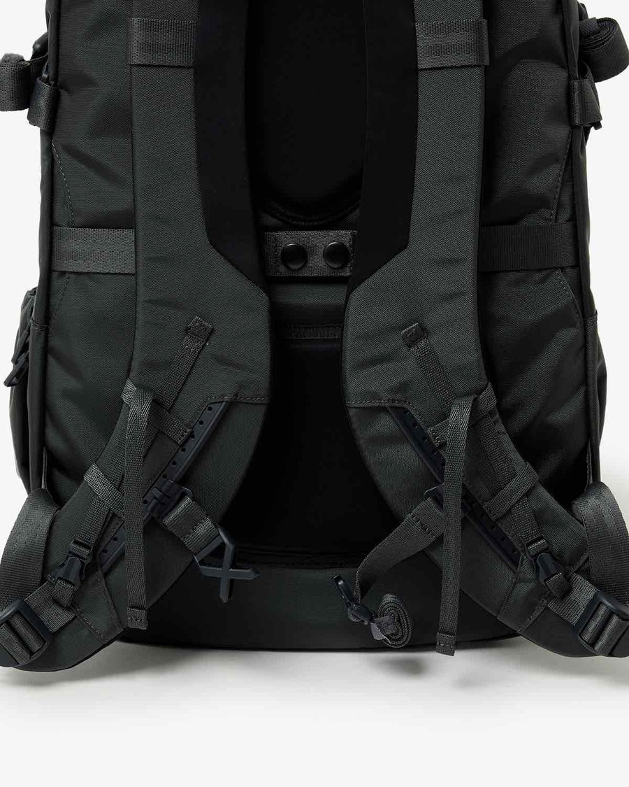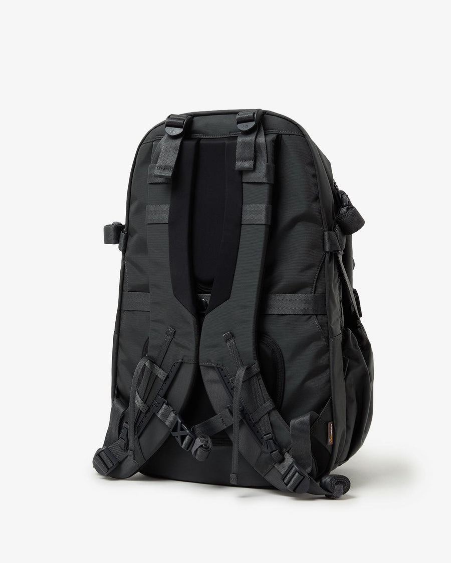 This backpack uses 100% recycled *Cordura® re/cor™*, with a neoprene back for comfort, multi-pockets, MOUNTING T SYSTEM, and Tochigi leather accents.