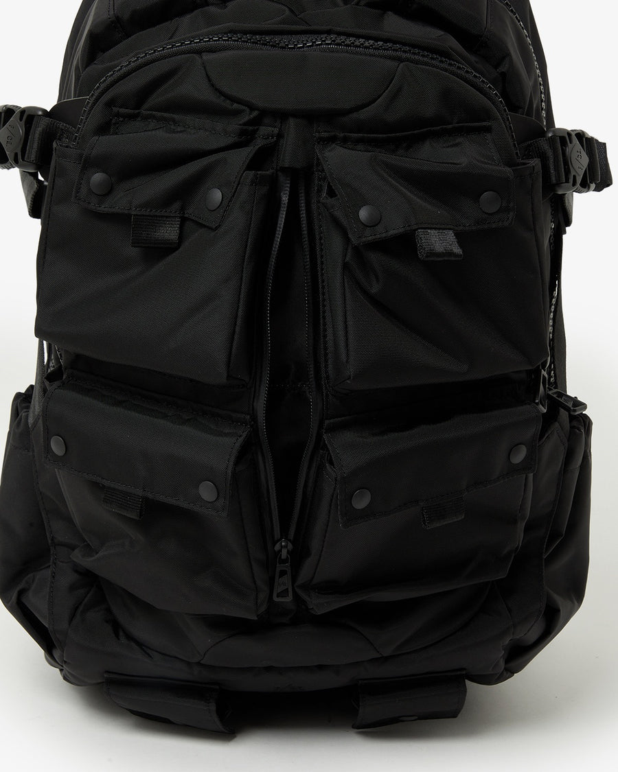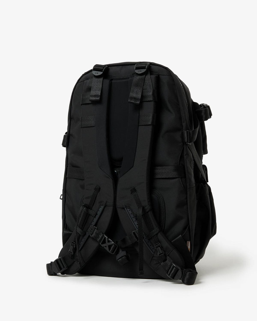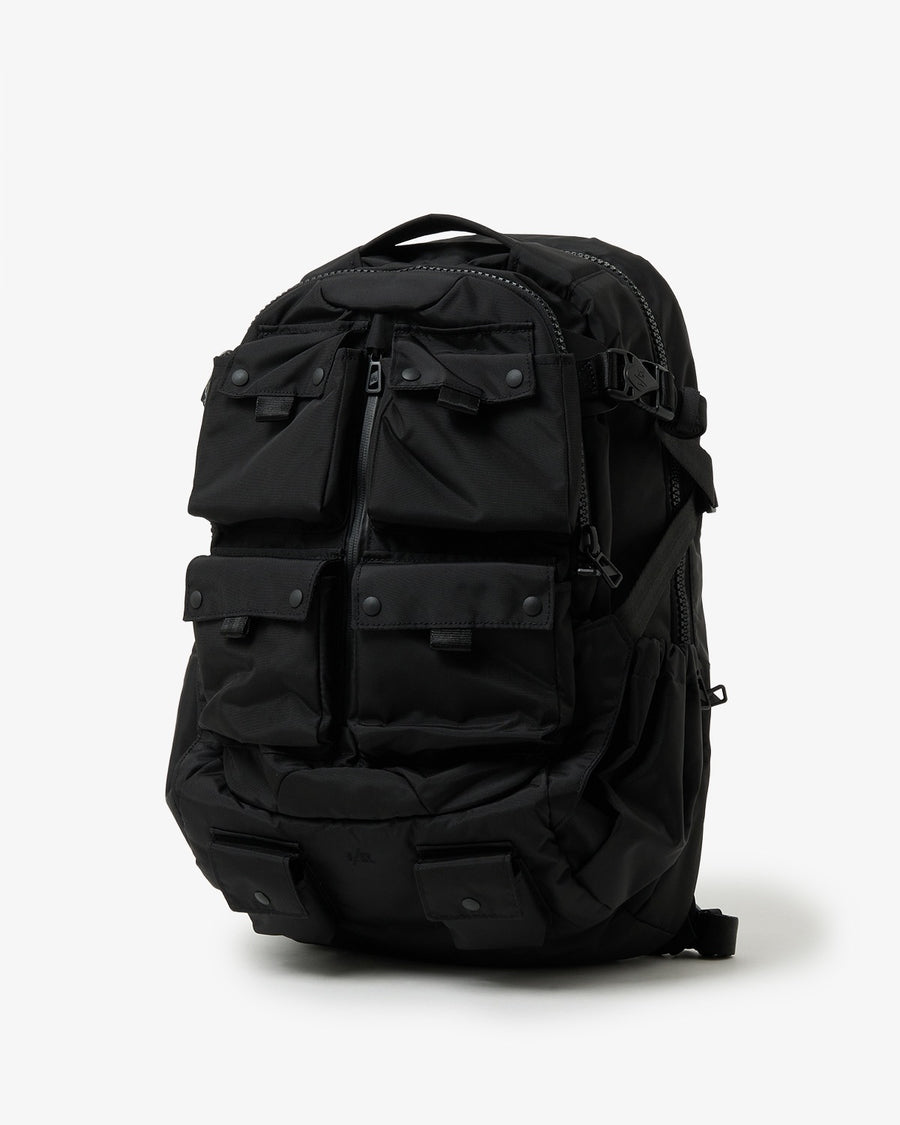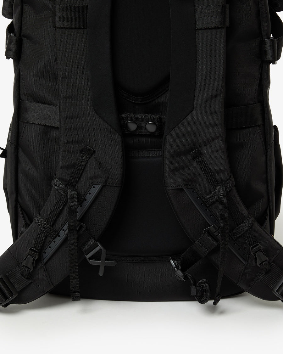 This backpack uses 100% recycled *Cordura® re/cor™*, with a neoprene back for comfort, multi-pockets, MOUNTING T SYSTEM, and Tochigi leather accents.